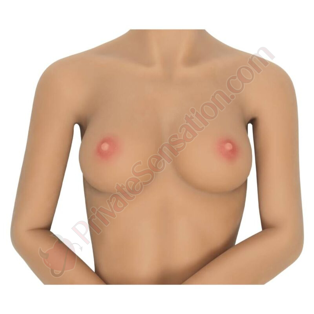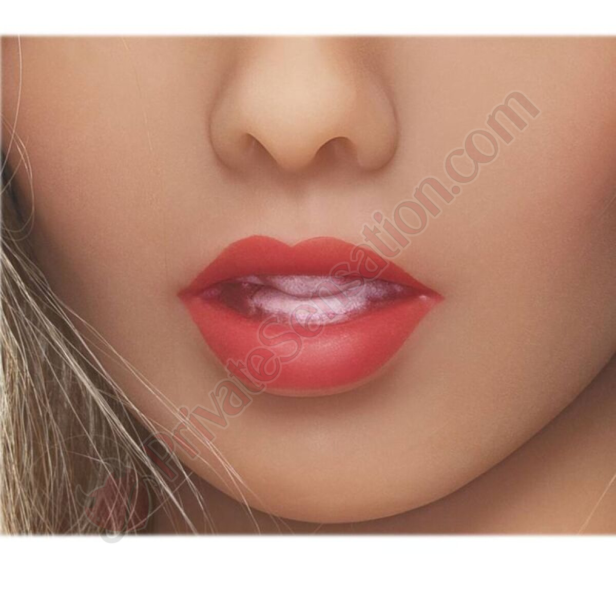 The design is carefully crafted for a realistic appearance, with defined facial features, nails, and quality hair. It has three textured internal channels (oral, vaginal, and anal) that can be warmed with the included accessory. The TPE material makes it fully waterproof.