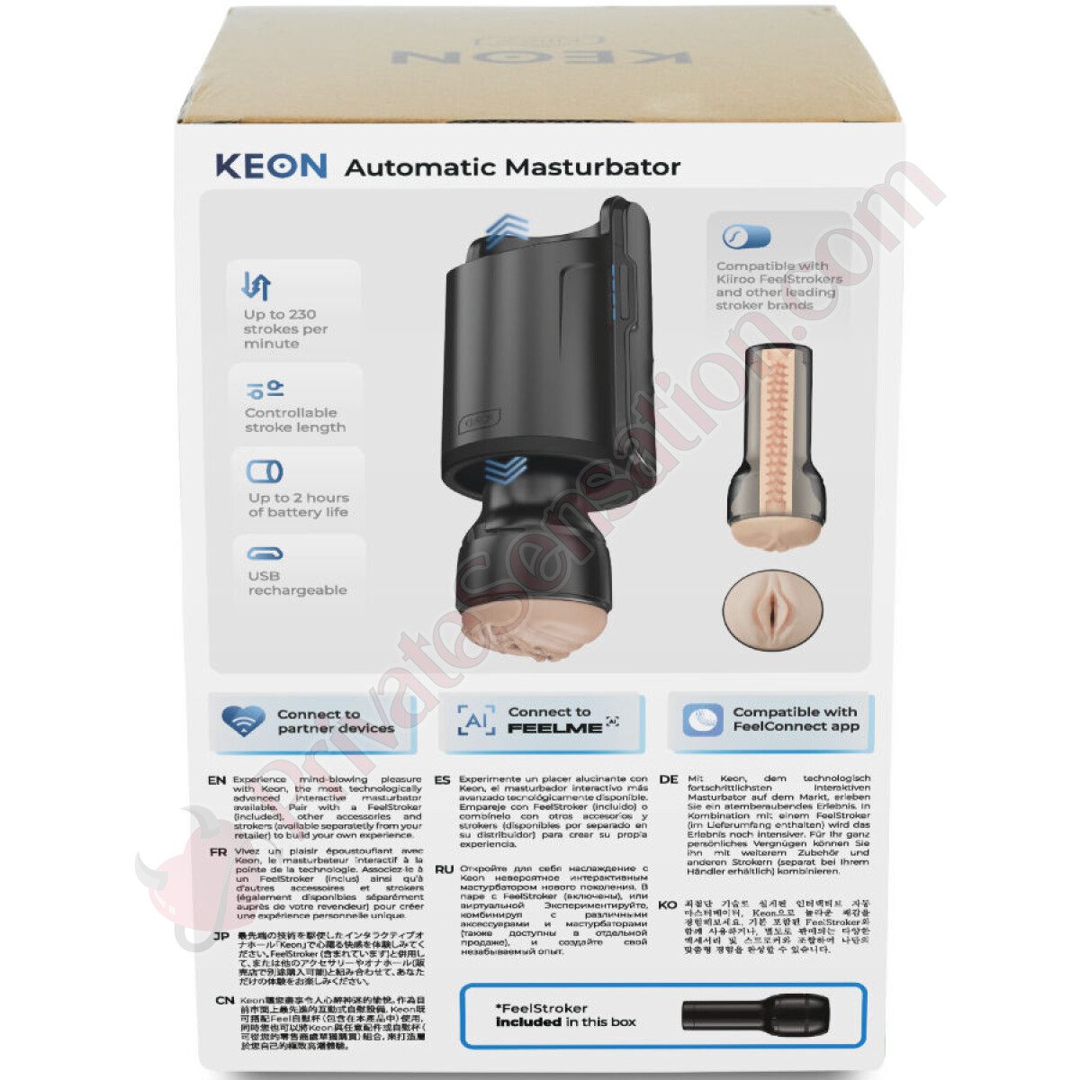 This realistic stroker features a soft, body-safe silicone tunnel with large stimulating bumps and a detailed entrance for maximum realism. Use it with Keon WiFi to sync every movement with your favorite adult scenes, achieving deep and immersive satisfaction.