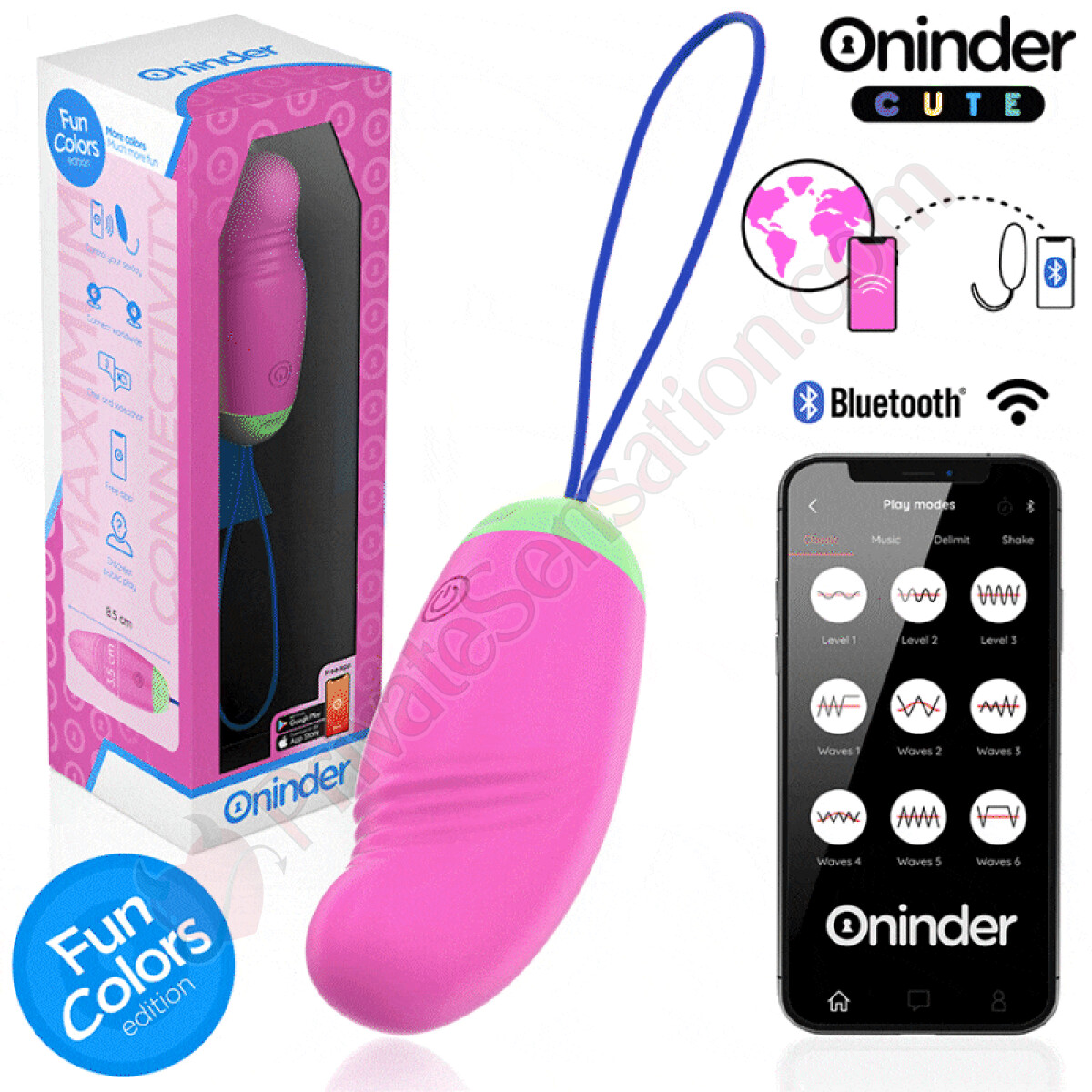 Discover the new ONINDER CUTE Vibrating Egg, designed for those seeking discretion, power, and innovative stimulation. Thanks to its advanced technology, this vibrating egg not only features 9 vibration modes but also incorporates a wave motion, offering a unique and enveloping sensation. Available in three vibrant color combinations: