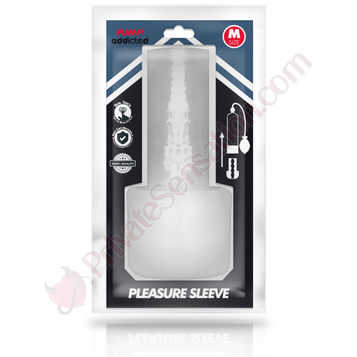 When you use the pleasure Sleeve together with the suction of your PUMP ADDICTED pump, something extraordinary happens: you'll see your penis at twice its normal size. This visual effect, combined with the physical sensations, creates a multidimensional pleasure experience that will make you feel more powerful, larger, and more satisfied than ever before.