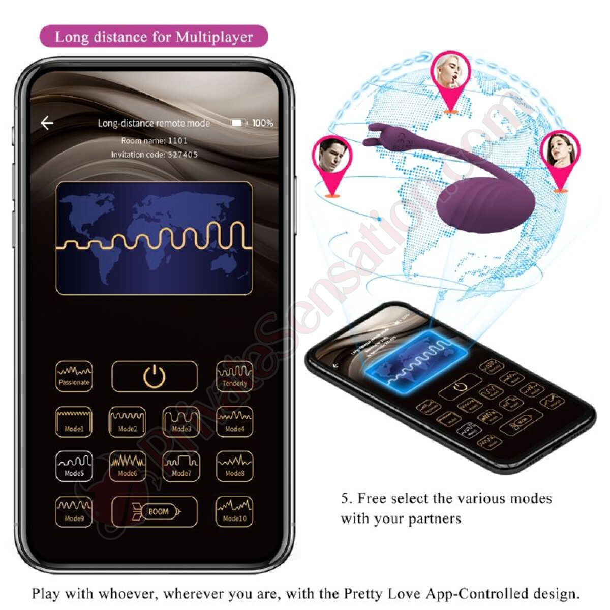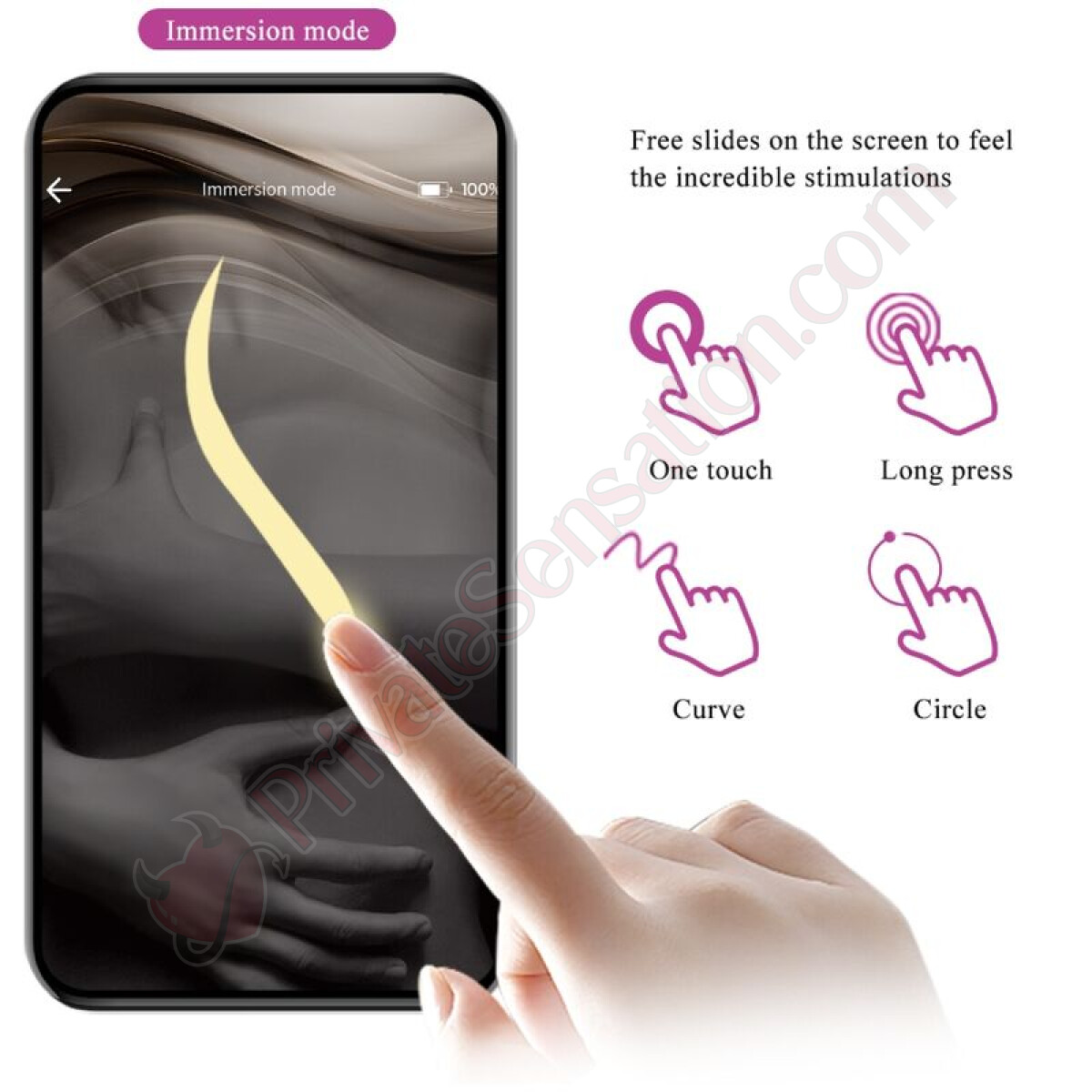 Thanks to the free Pretty Love app, pleasure knows no limits. Use the device in hands-free mode or let your partner take control from any distance. Whether you're sitting at the same table or separated by thousands of miles, discreet play is always just a click away. The app offers precise and intuitive control, allowing you to explore new forms of intimacy and connection.
