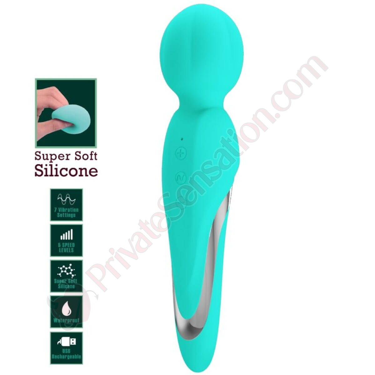 Crafted from medical-grade silicone of the highest quality, this massager offers an incredibly soft, silky, and sensual feel. Its smooth, delicate surface glides perfectly on the skin, ensuring comfort and pleasure without irritation. The aqua green color adds a touch of discreet elegance, making it a refined accessory to proudly keep.