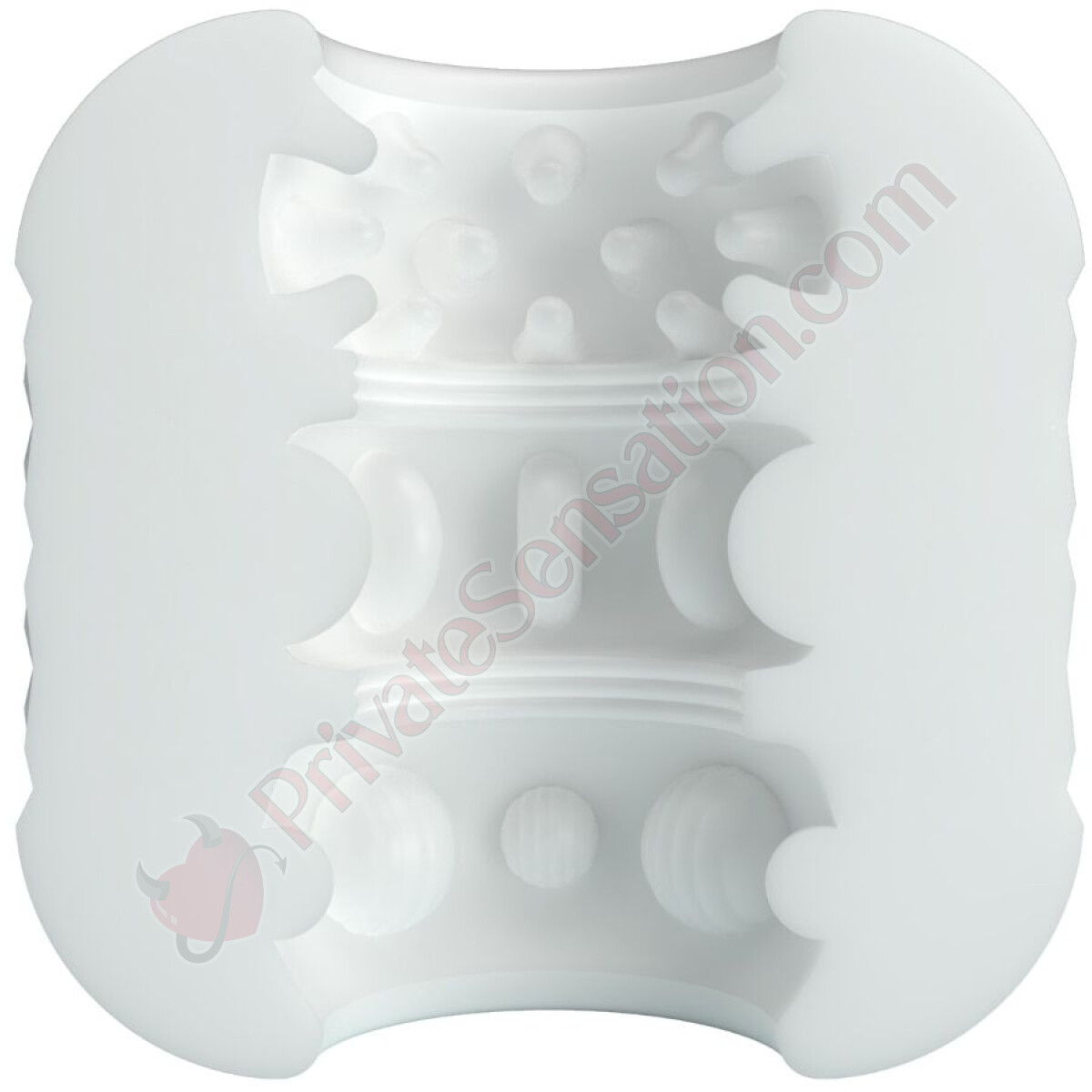 This unique product features two entries that allow easy access to the inner channel, covered with dozens of soft and elastic sensors. This feature not only enhances the tactile experience but also ensures enveloping and personalized stimulation.