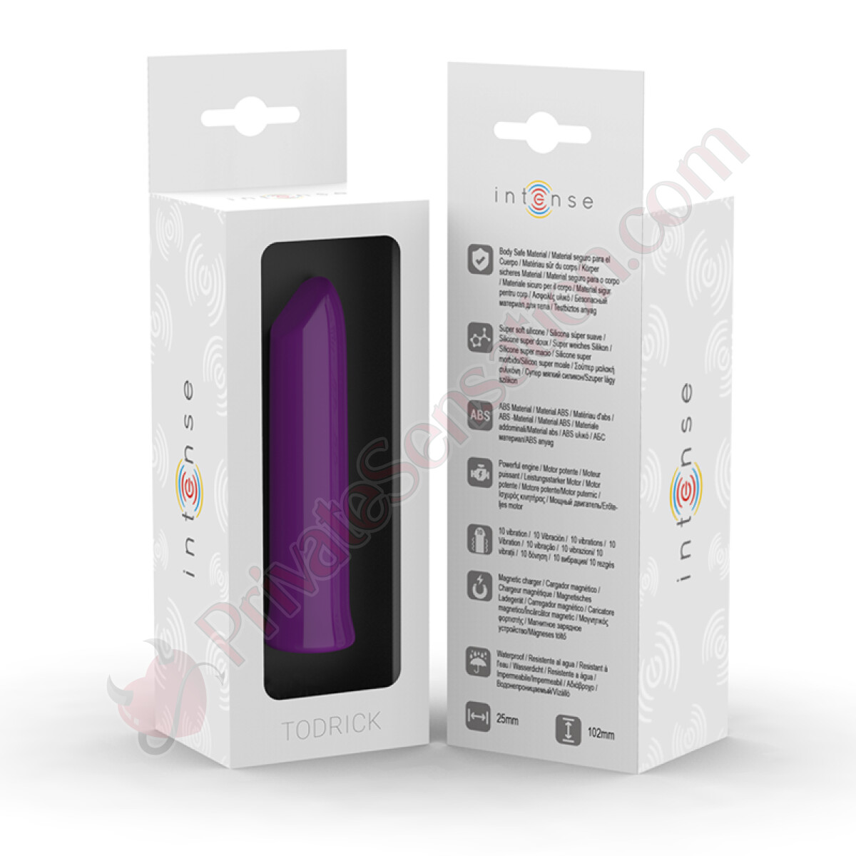 Introducing the TODRICK vibrating bullet, a masterpiece of design and engineering from the renowned brand INTENSE. This stimulation device immediately stands out for its elegant appearance and compact form, wrapped in a vibrant and seductive purple hue that promises an extraordinary experience. Don't be fooled by its small size: the TODRICK is engineered to deliver exceptional performance, combining discretion, power, and versatility in one sophisticated product.