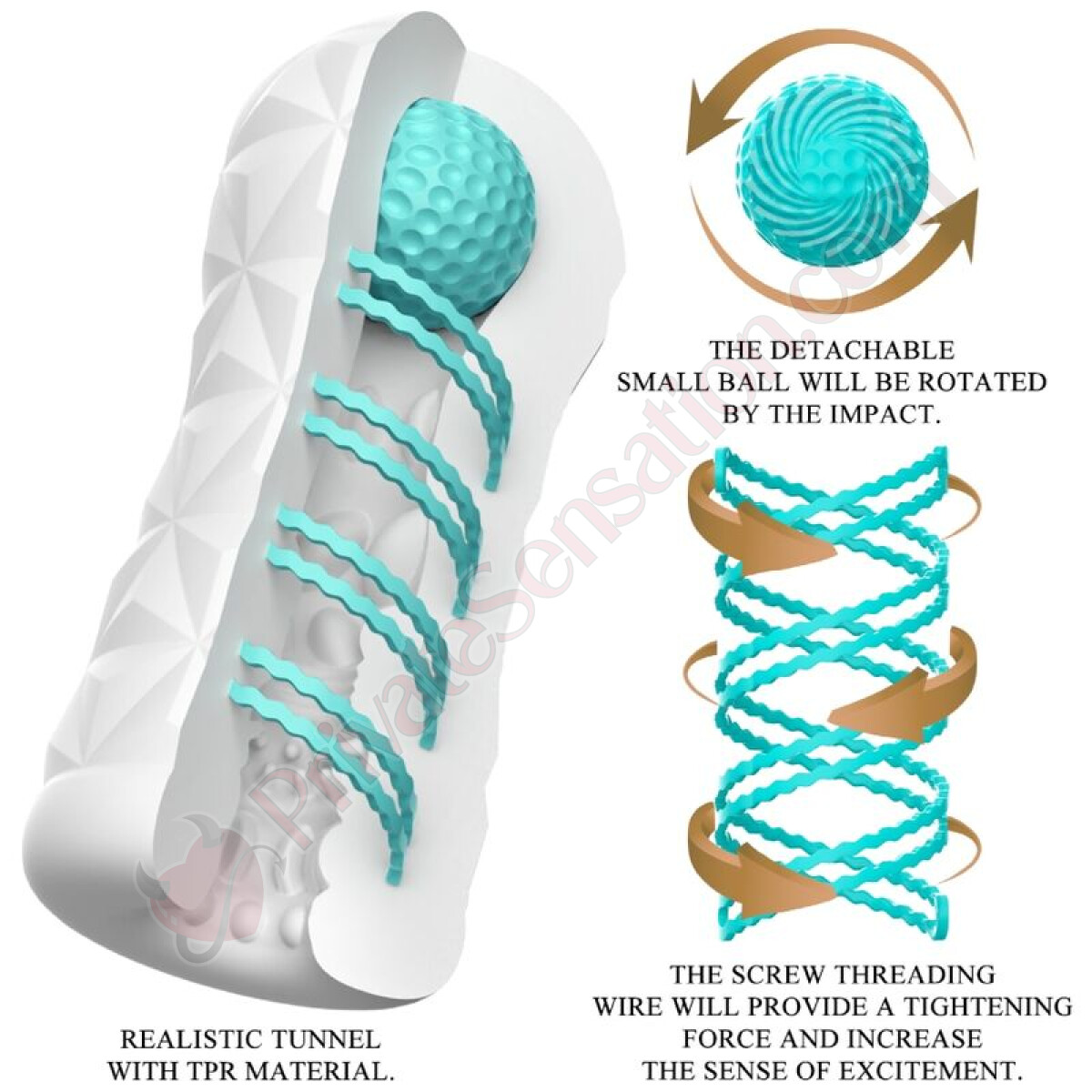And there's more. The strategically placed stimulating ball on the side has one mission: to target and massage your most sensitive spot, whether it's the frenulum or other erogenous zones, delivering focused, intense peaks of pleasure.