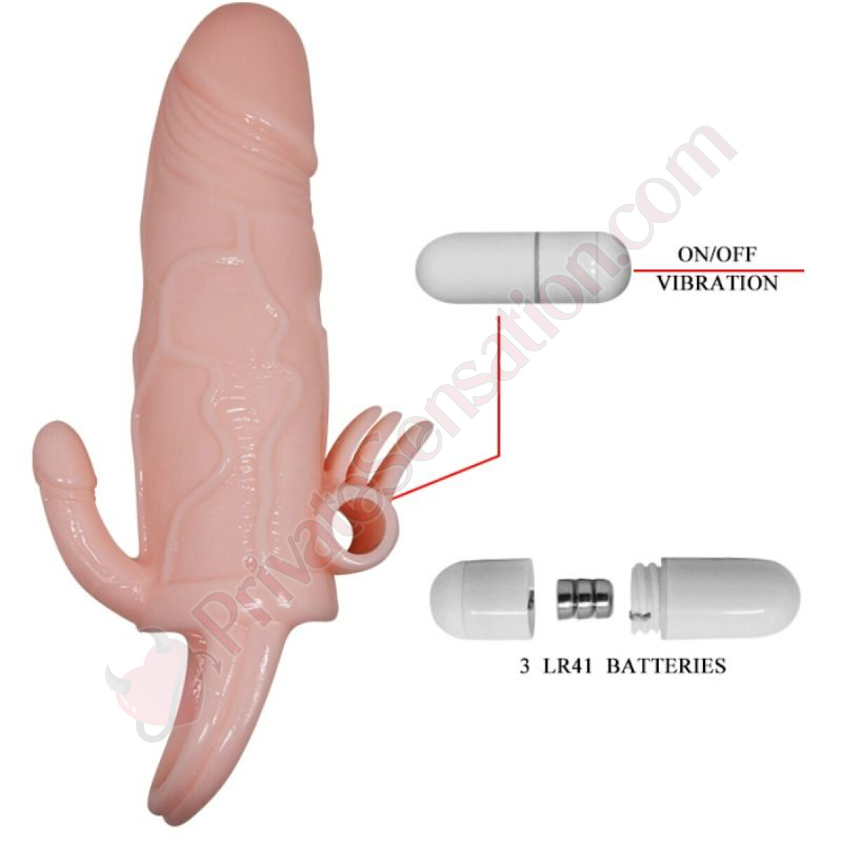 Technical Specifications: Vibration power: 3x LR41 batteries (included). For all measurements, please refer to the product image.