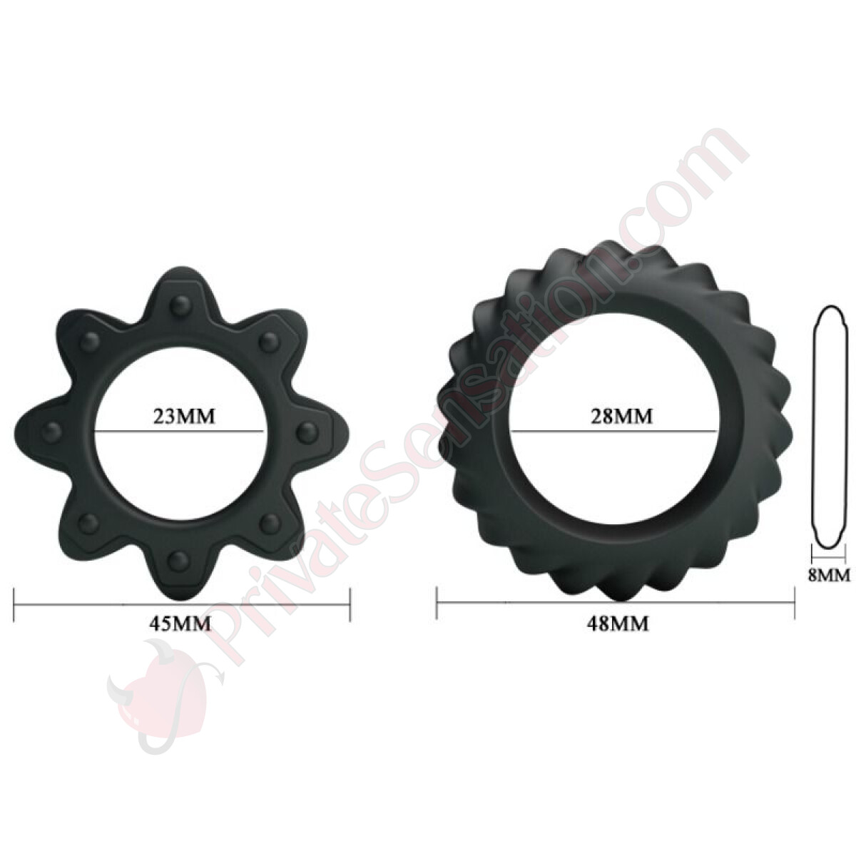 Designed to maximize pleasure, this set includes two rings to be placed strategically: one at the base of the penis, near the testicles, and the other below the glans. This setup helps to: