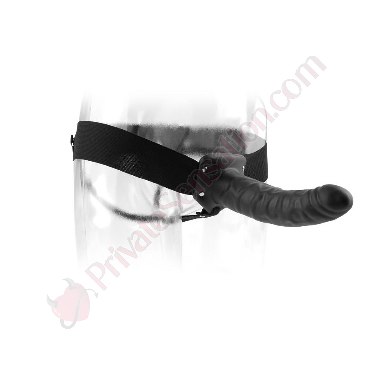 Have you always dreamed of having a larger penis to feel more confident and satisfy your partner? Your lover knows that size matters, and no one can fulfill your fantasies and please your companion like a true stallion. Now you can achieve the length and girth you've always desired with this black hollow strap-on, designed for a secure and stable grip.