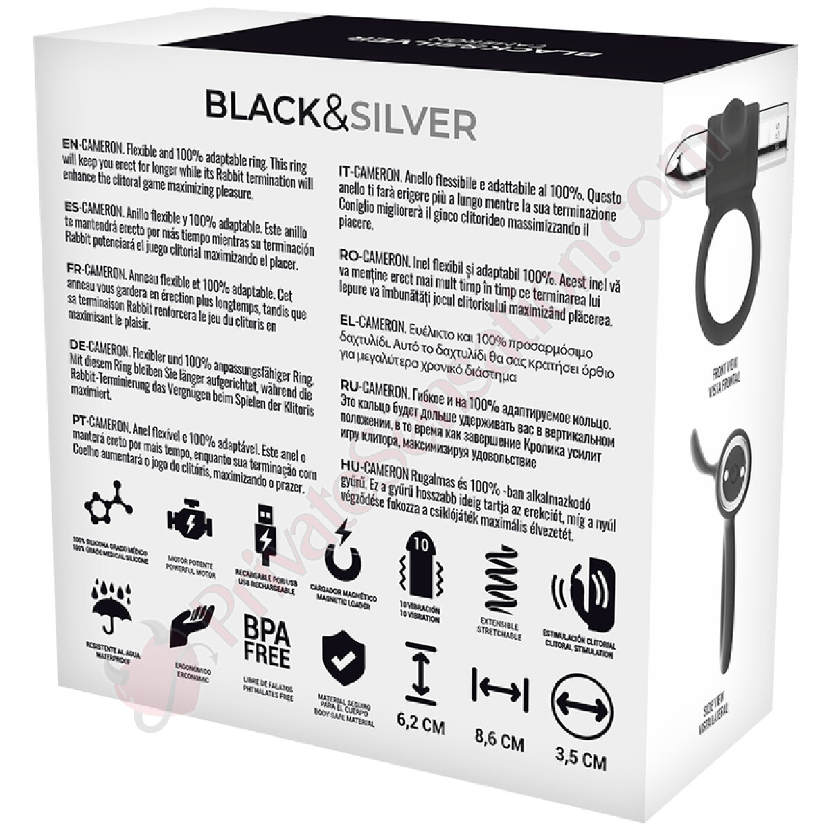With its intense black surface, smooth as silk and made of medical silicone, the Black & Silver Ring puts you in sensual ecstasy as soon as you put it on. The ring stretches pleasantly, thus adapting to all sizes, just to accommodate and give pleasure to your penis.