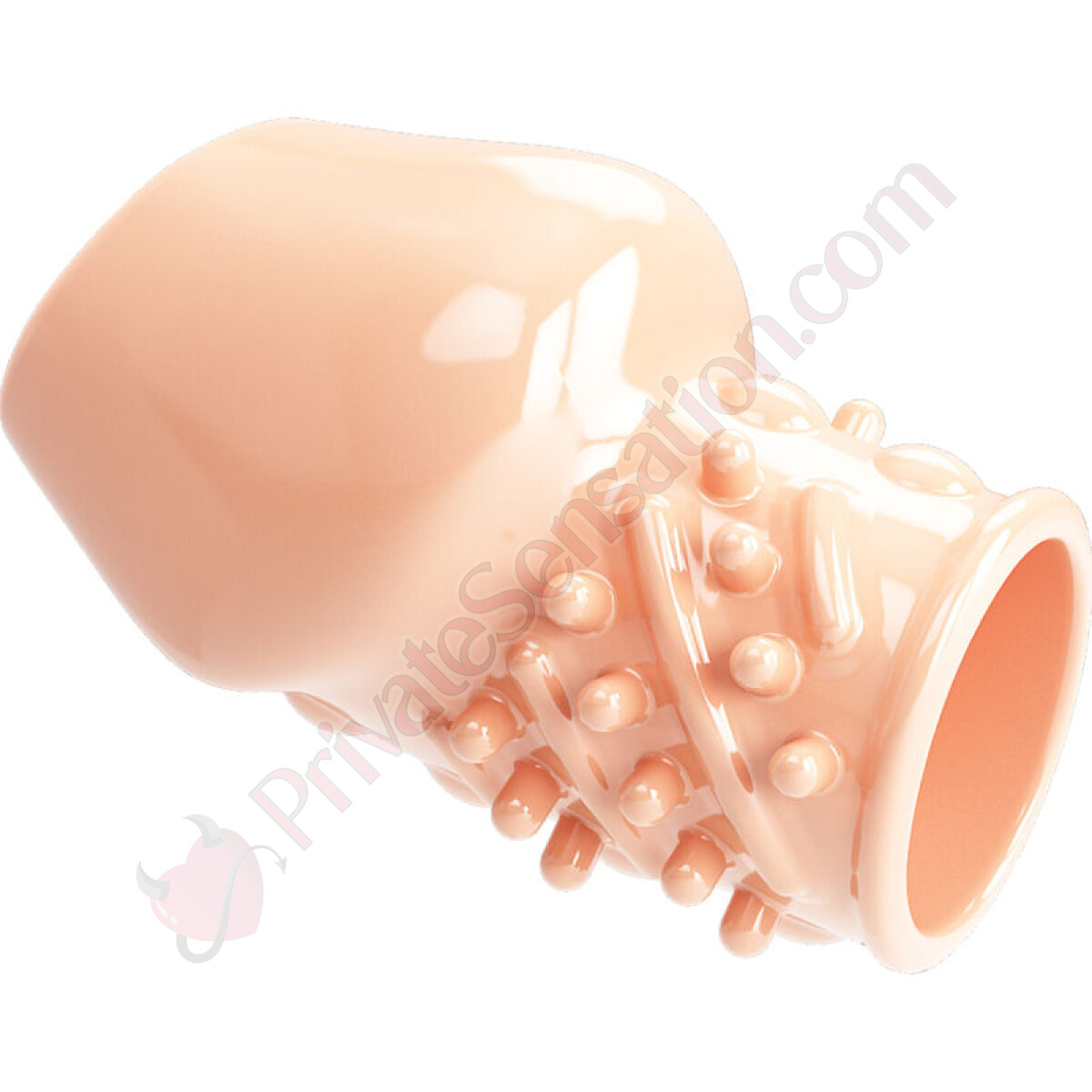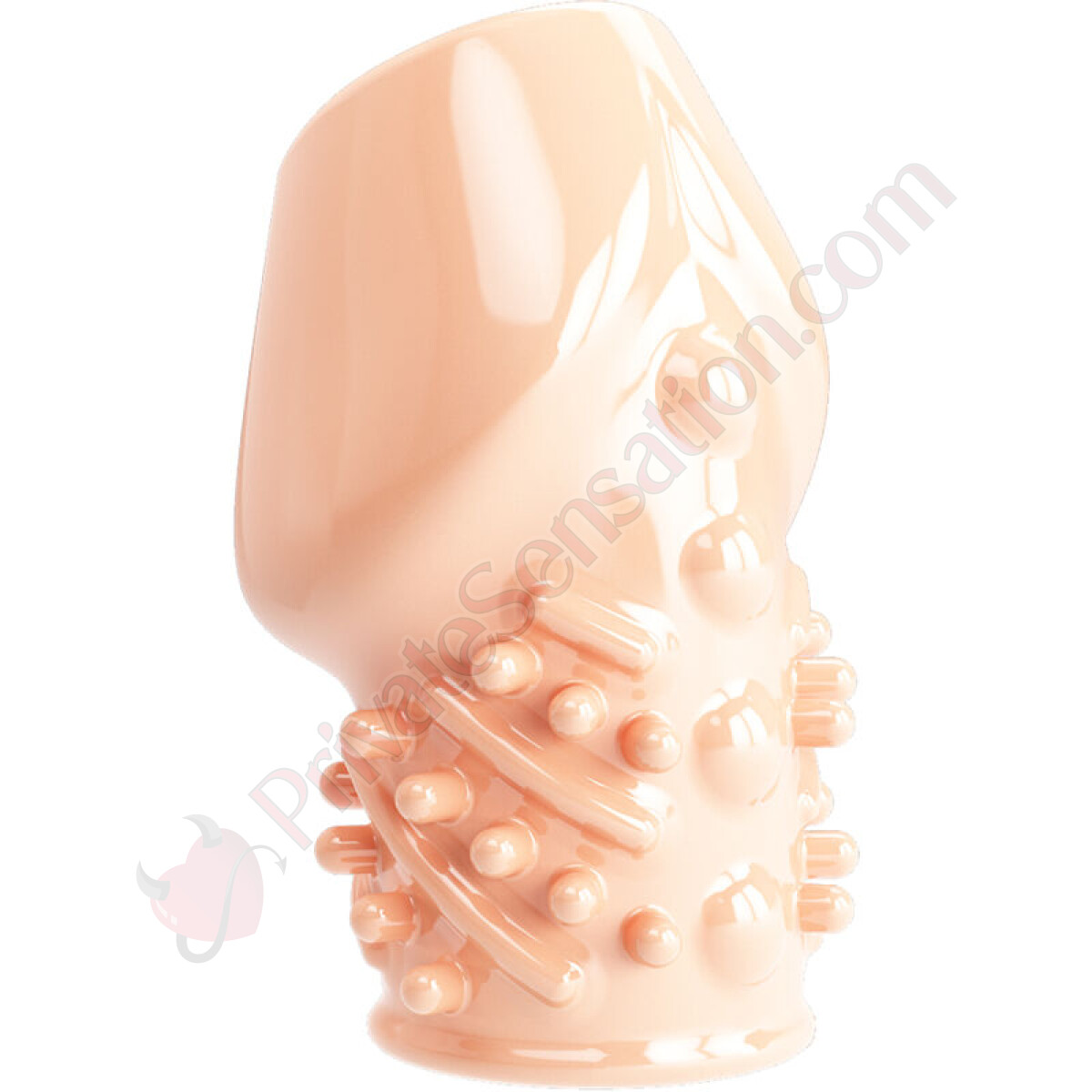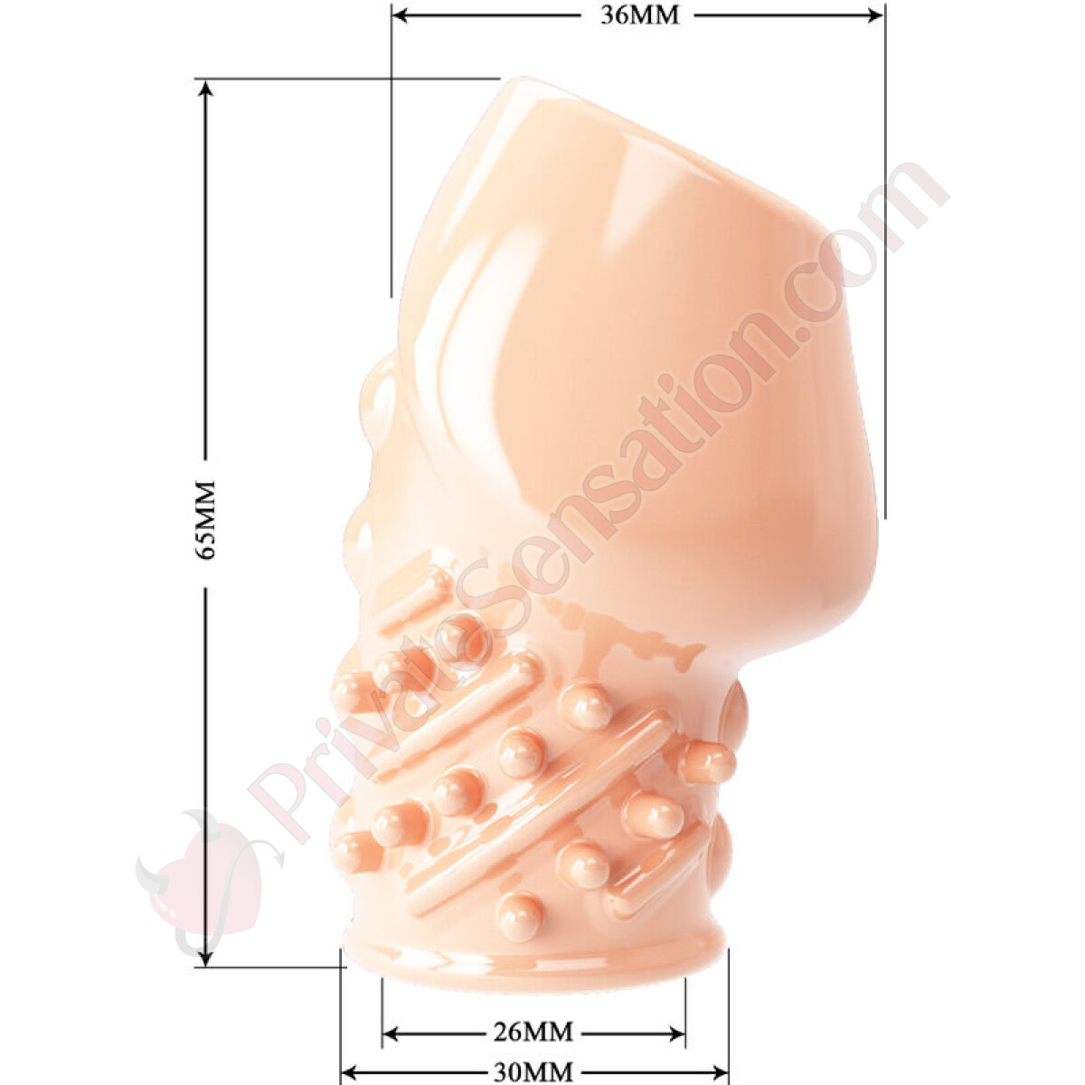 The penis sleeve is available in color 1002S flesh tone, which blends discreetly with the natural skin shade for a realistic and comfortable appearance. With packaging dimensions of 90*50*45 mm, it's compact and easy to carry, ready to be used wherever you desire. The TPR material not only ensures softness but also durability, withstanding repeated use without losing its shape or elasticity.
