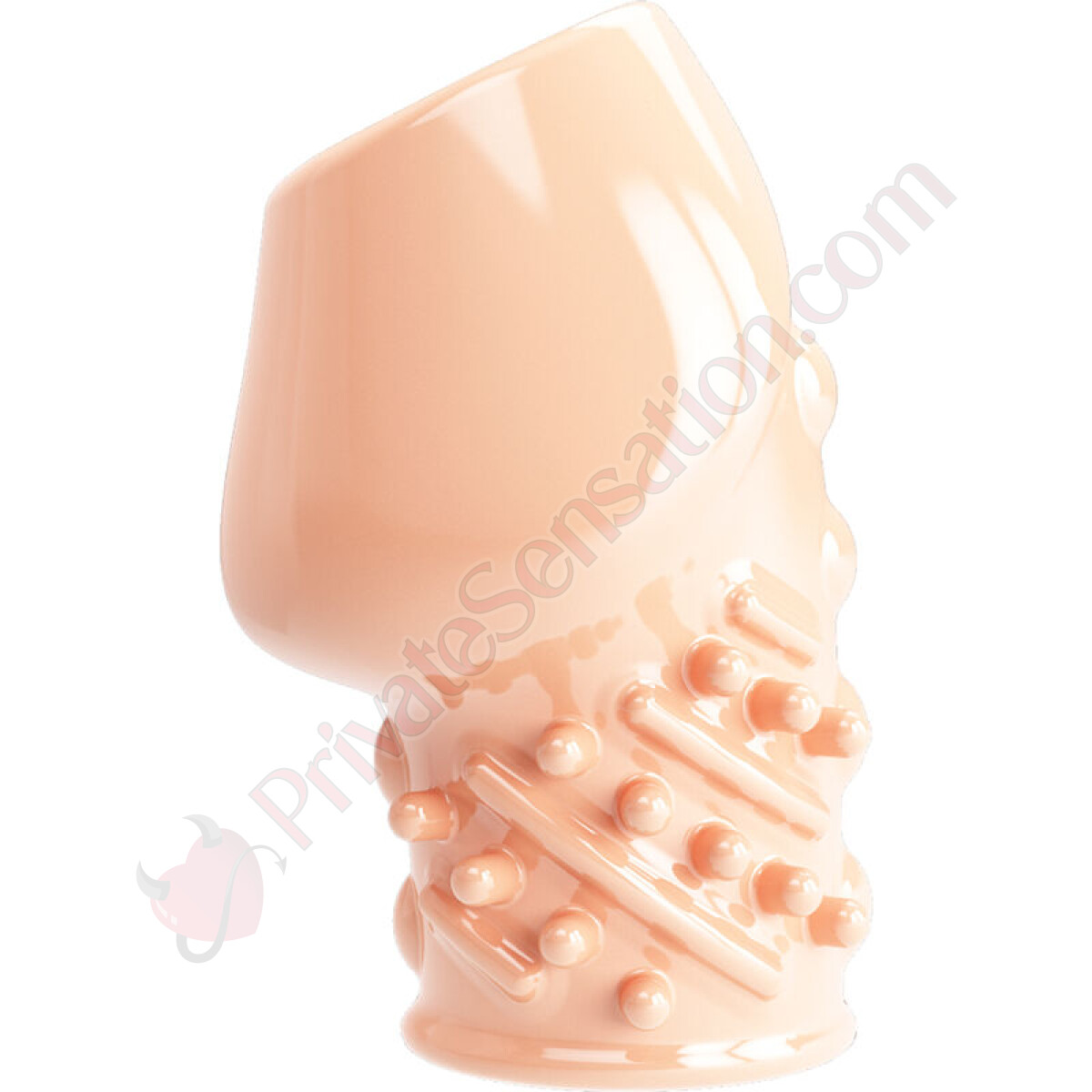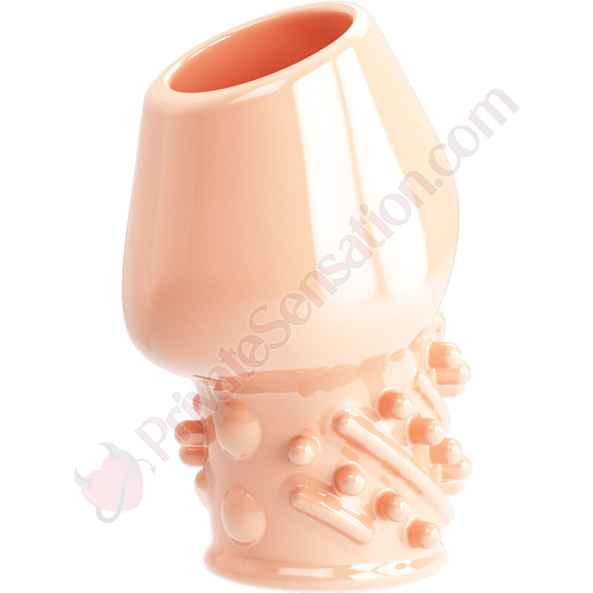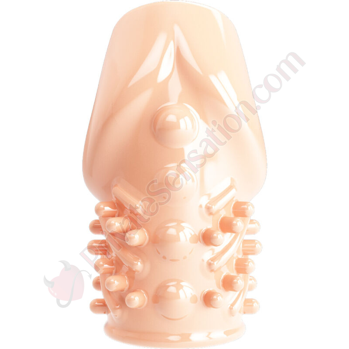 The penis sleeve is available in color 1002S flesh tone, which blends discreetly with the natural skin shade for a realistic and comfortable appearance. With packaging dimensions of 90*50*45 mm, it's compact and easy to carry, ready to be used wherever you desire. The TPR material not only ensures softness but also durability, withstanding repeated use without losing its shape or elasticity.