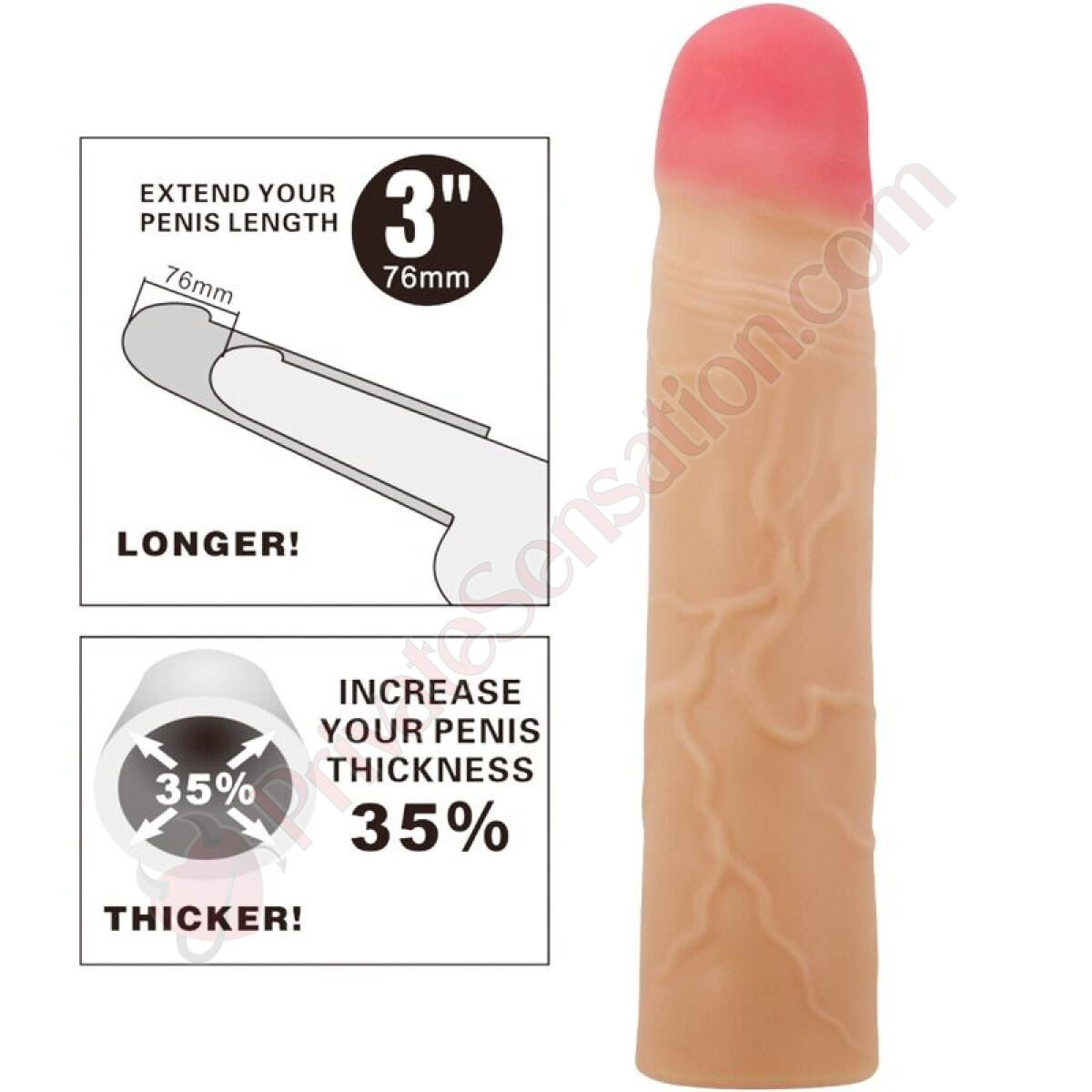 Made with highest quality materials, this extender is designed to last over time and deliver exceptional performance with every use. The external surface features a texture with realistic veins that not only looks authentic but ensures optimal stimulation for your partner. The bulbous head is engineered to maximize pleasure during penetration, delivering natural and intense sensations.