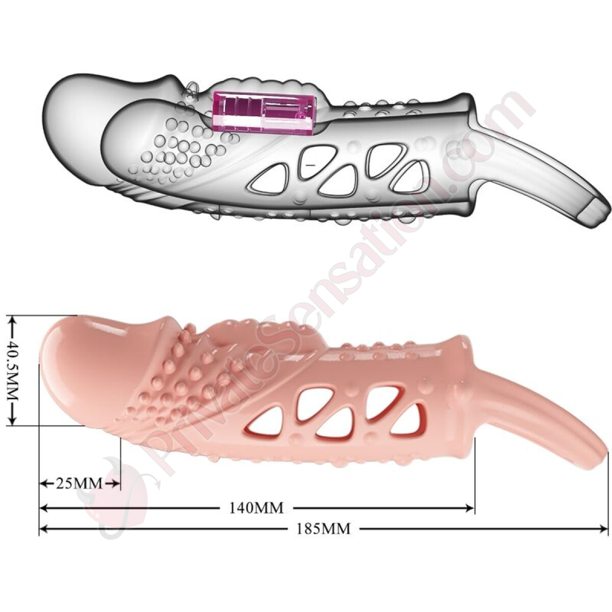 The highlight of this sleeve is the integrated vibrator in the tip, which magically activates upon simple contact. This smart technology virtually extends the length of your penis, gently yet intensely stimulating your partner's glans during penetration. The vibrations not only increase your pleasure but also offer deep internal stimulation for her, creating a shared and unforgettable experience.