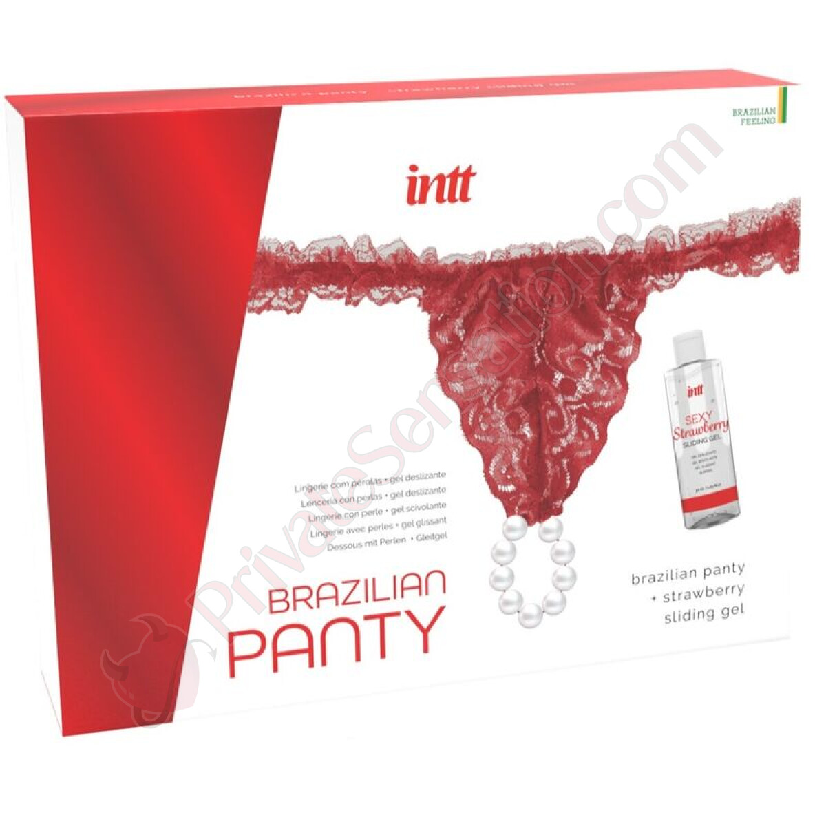 Introducing the most exclusive and sophisticated set from INTT: Brazilian Panty Red with Pearls, accompanied by a water-based lubricant gel with strawberry flavor. This collection represents the pinnacle of erotic elegance, designed to transform every intimate moment into an unforgettable experience.