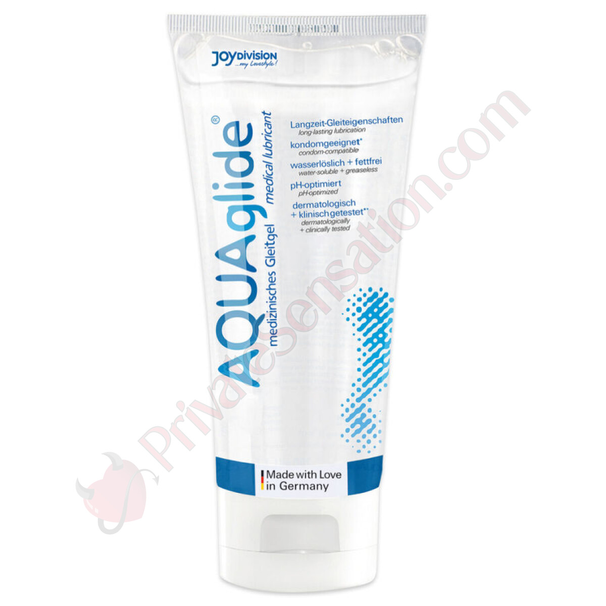 Especially skin-friendly, AQUAglide has passed dermatological and clinical compatibility tests. It is 100% compatible with condoms, has an optimal pH, is water-soluble, and free of grease. It does not stain and is very easy to clean after use.