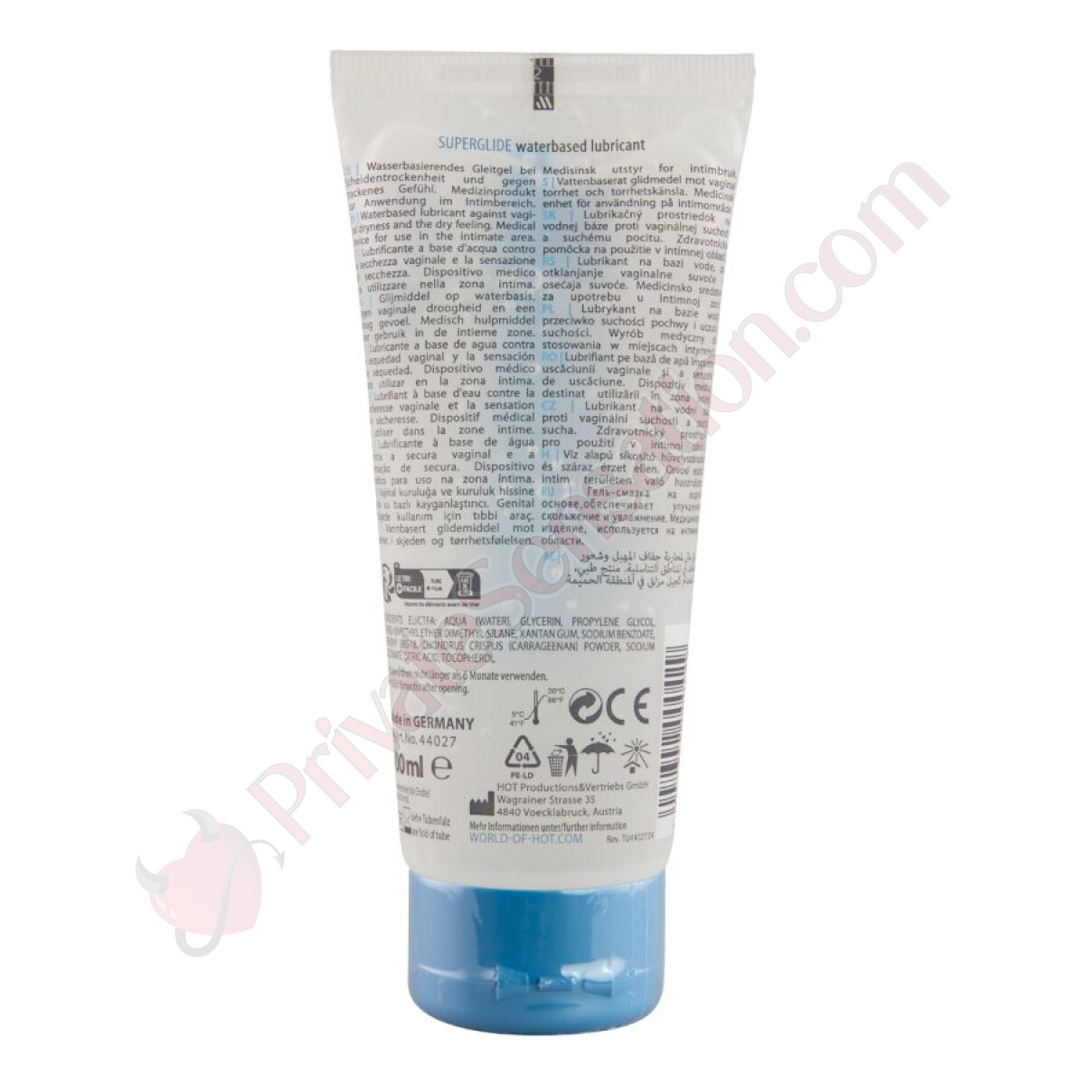 The formula is composed of selected ingredients to guarantee safety and effectiveness: Water, glycerin, propylene glycol, bis-peg-18 methyl ether dimethyl silane, xanthan gum, sodium benzoate, methoxy peg-18, Chondrus Crispus powder (carrageenan), sodium gluconate, citric acid, tocopherol. Each component is chosen to offer a pleasant and skin-respecting experience.
