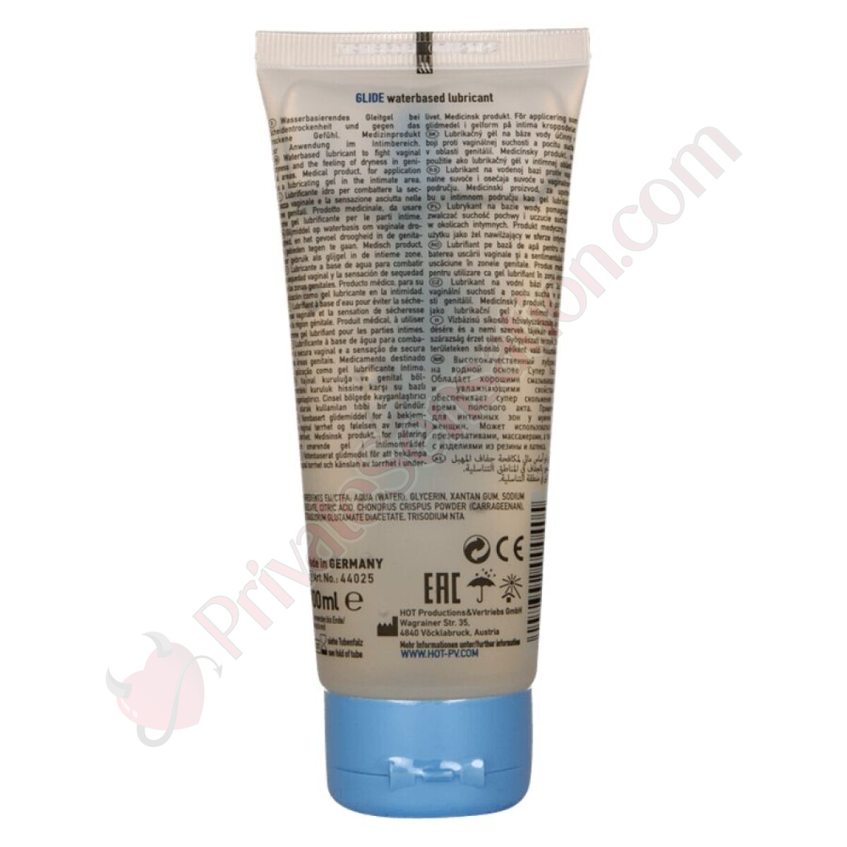 Selected ingredients for maximum safety and performance: Water, glycerin, xanthan gum, sodium benzoate, citric acid, Chondrus Crispus powder (carrageenan), tetrasodium glutamate diacetate. A combination that ensures hydration, smooth glide, and a pleasant feel on the skin without irritation.
