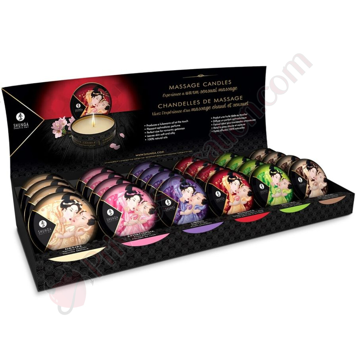 This exclusive set includes 6 models of Shunga Candles, each 30ml, with a unique aroma that stimulates the senses in different ways. With 4 units per model, for a total of 24 units, you'll have everything you need to explore various shades of pleasure: