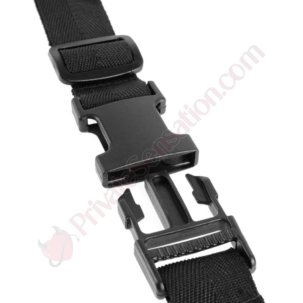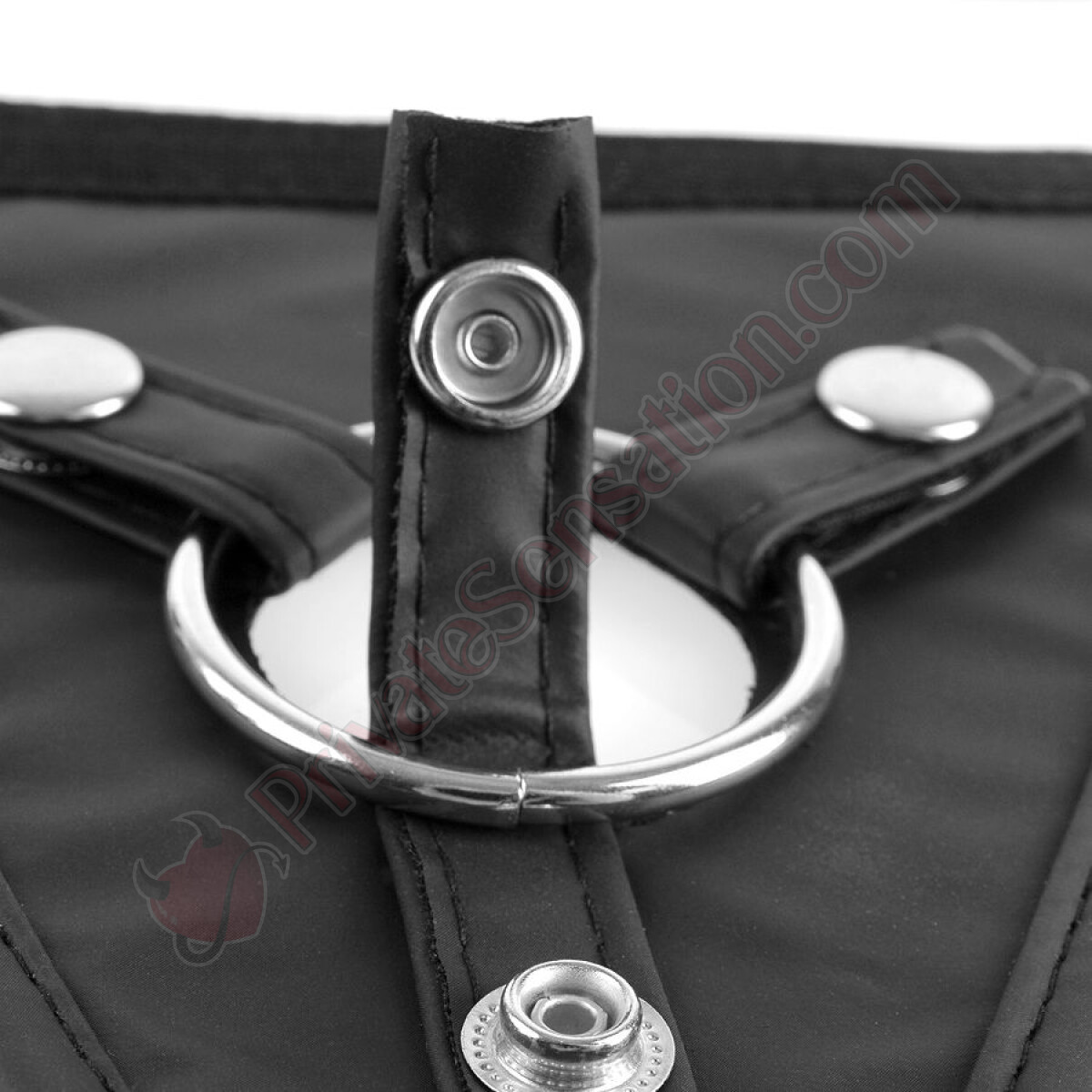 This harness is designed to hold a dildo in place during use, thanks to a structure with adjustable straps that adapt to the body. It is intended for dynamic use and allows for freedom of movement without discomfort.