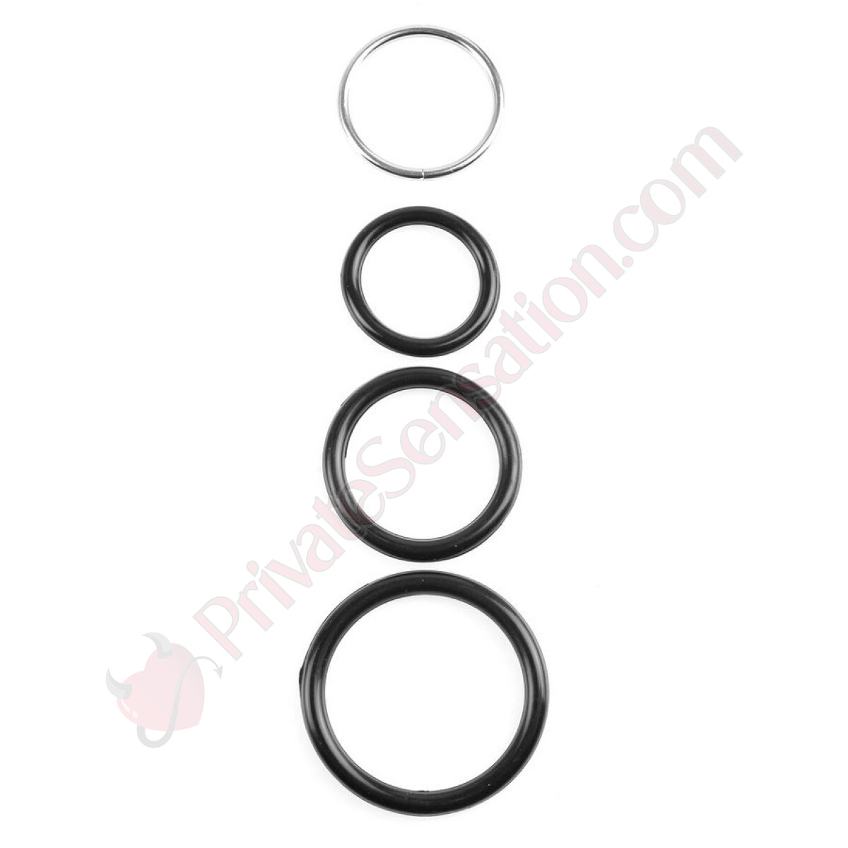 The package includes one metal O-ring and three silicone rings of different sizes, making the harness compatible with a wide variety of dildos (not included). To clean, simply hand wash the product and let it dry on a flat surface.