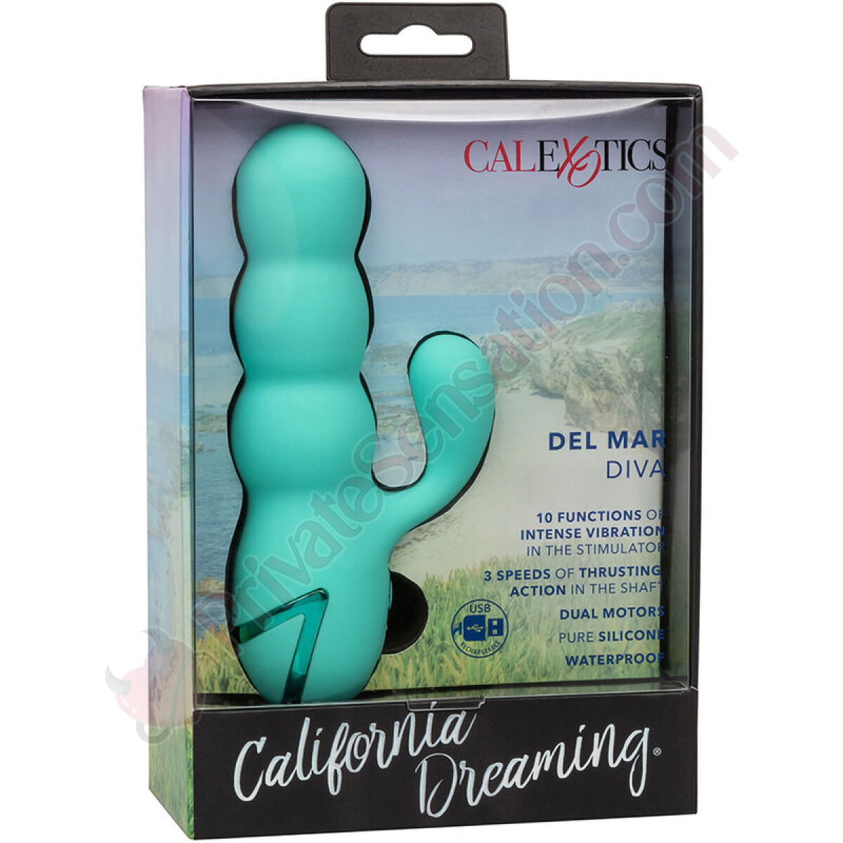 The California Dreaming collection from CalExotics brings luxury and adventure right to your fingertips with the bold Del Mar Diva. This powerful dual massager is designed to relive your most intense summer fantasies, offering a complete sensory experience that will make your knees tremble.
