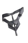 The durable vinyl harness keeps everything in place, even during the strongest sex. The interior is comfortable and the straps are fully adjustable to the body, fitting perfectly from sizes S to XL. Metal buckles at the strap junctions ensure they don't loosen, while Velcro straps keep the rings holding the dildo straight and fixed.