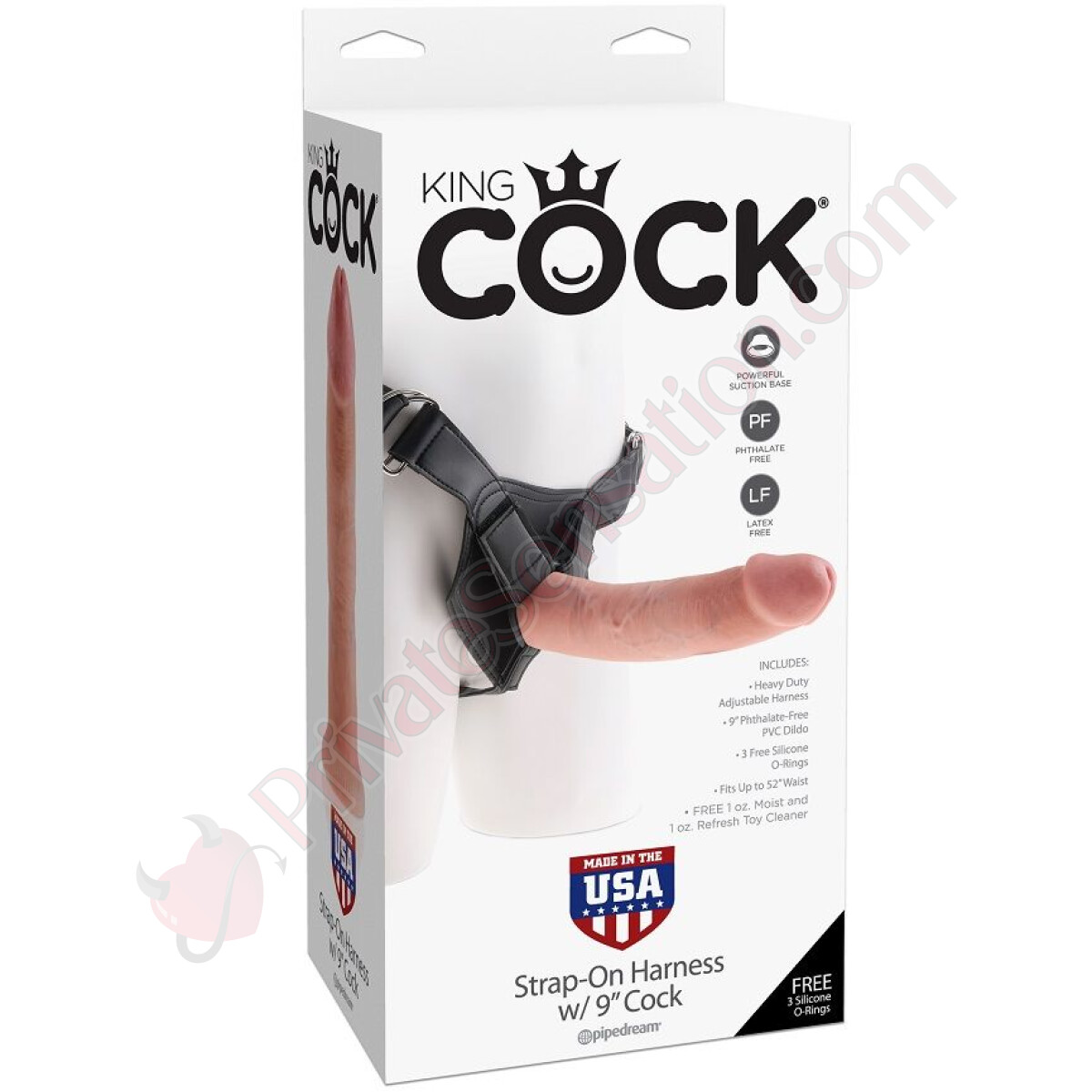 The durable vinyl harness keeps everything in place, even during vigorous sex. The interior is comfortable, and the straps are fully adjustable, fitting perfectly from sizes S to XL. Metal buckles ensure they don't come loose, while Velcro straps keep the rings straight and fixed.