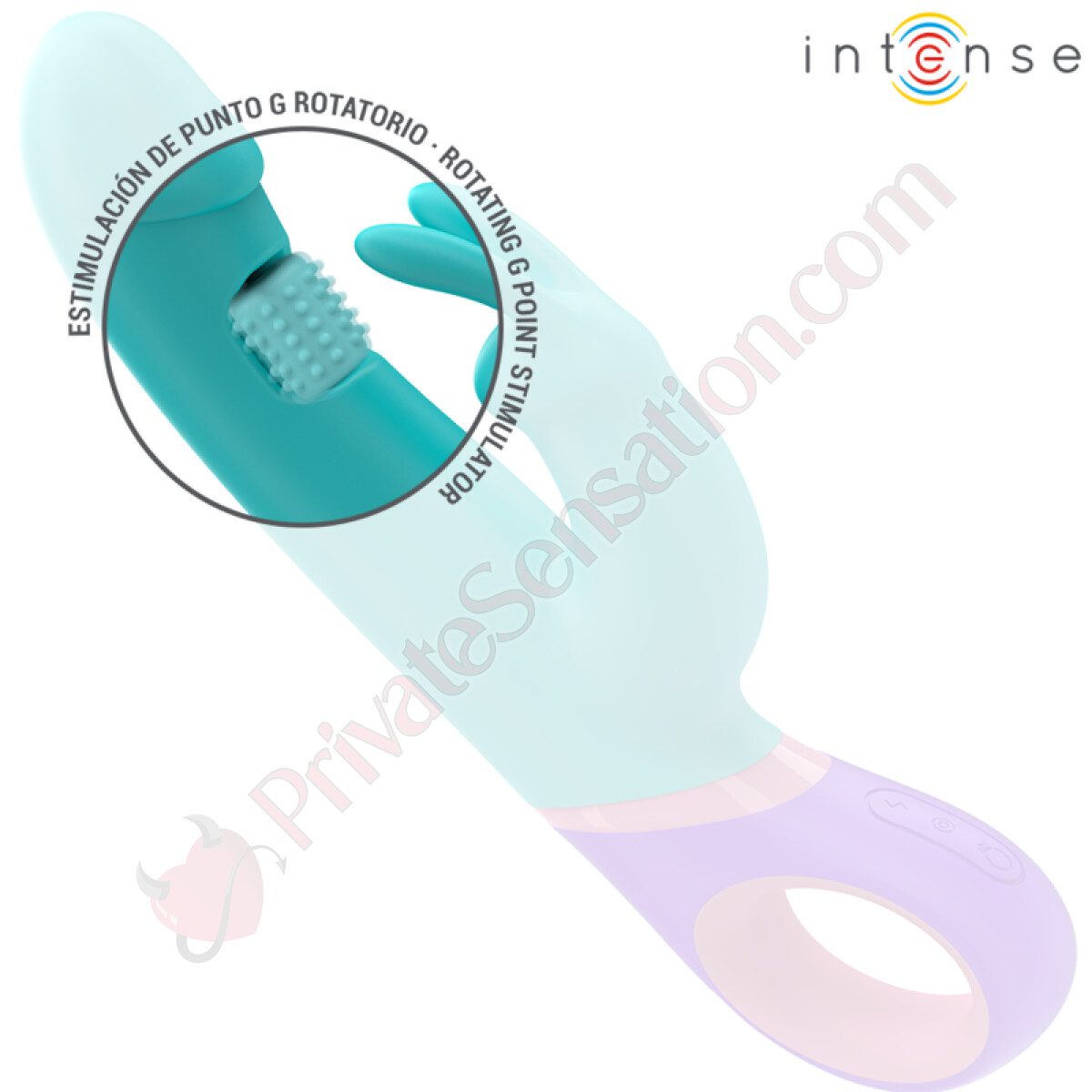 Are you searching for a sensual experience that combines elegance, technology, and deep pleasure? The MONICA rabbit vibrator from the renowned brand INTENSE is the answer you've been waiting for. With its sophisticated design in an attractive blue color, this device is crafted to provide you with complete and satisfying stimulation, thanks to its dual action and innovative rotating G-spot stimulator.