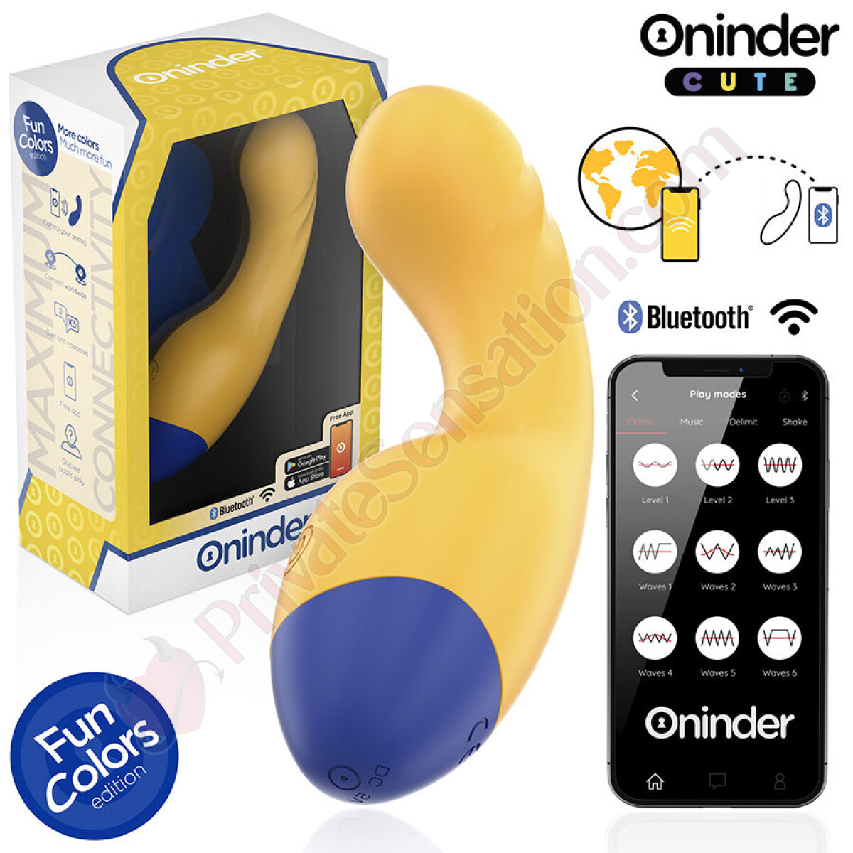 With a total length of 14 cm and a diameter of 3 cm, this vibrator is perfect for both internal and external stimulation. Its sleek and ergonomic shape comfortably fits your hand and body. Plus, the combination of vibrant yellow with a dark blue base gives it a striking and modern style, in line with the ONINDER CUTE collection.