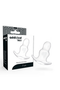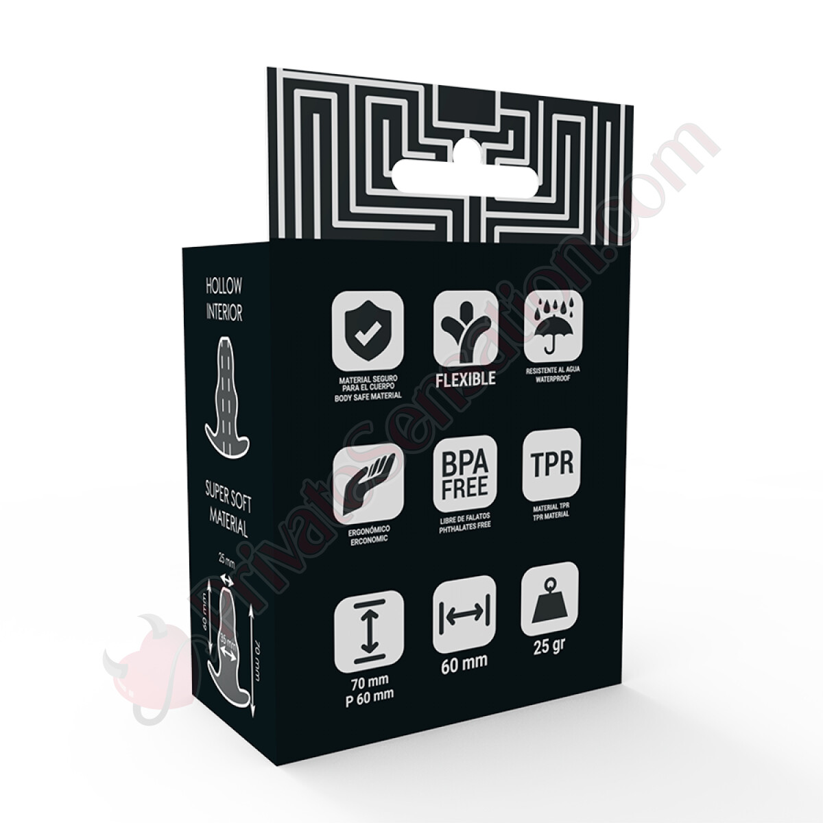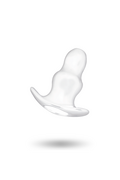 This anal dilator is shaped like a tunnel with a hollow structure. The design features two connected rings of different sizes, intended for gradual insertion: you start with the smaller ring and move on to the larger one. Its hollow tube shape allows it to be used in combination with other items.