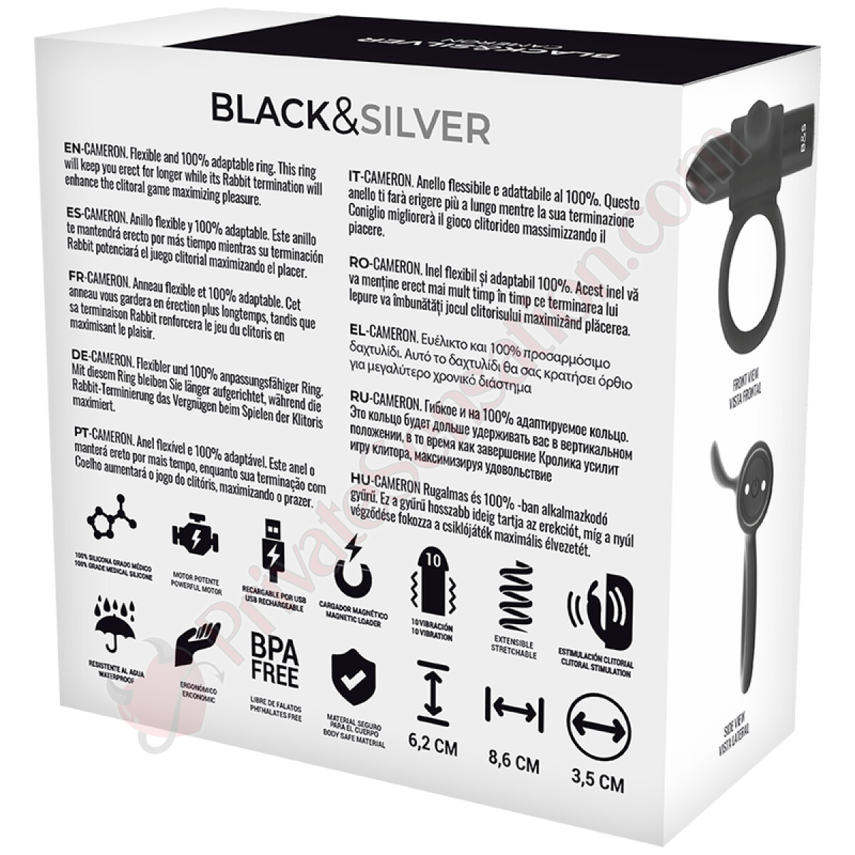 Made of hypoallergenic medical silicone, phthalate-free and body-safe. The silky surface is easy to clean with water and mild soap, while the Waterfeel disinfectant spray ensures deep hygiene after each use. We recommend using water-based lubricants for an even smoother and more intense experience.