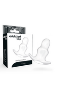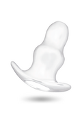 This anal dilator features a hollow tunnel structure, designed for progressive dilation. Its shape is characterized by two connected rings of different sizes: it starts with the smaller one and gradually increases in diameter as it is inserted further.
