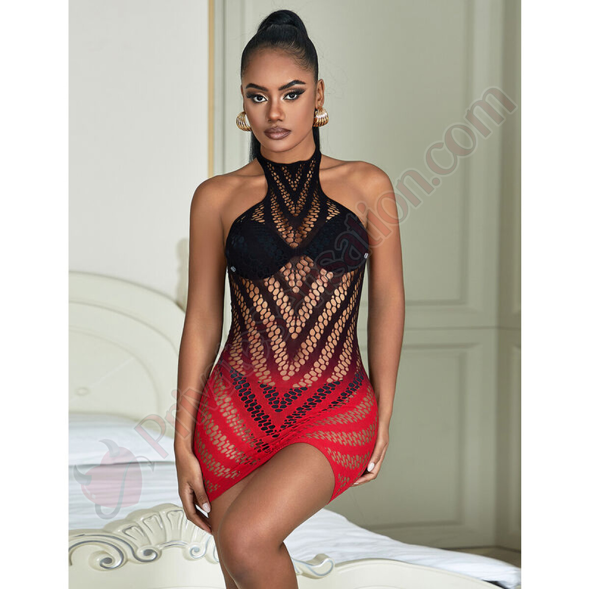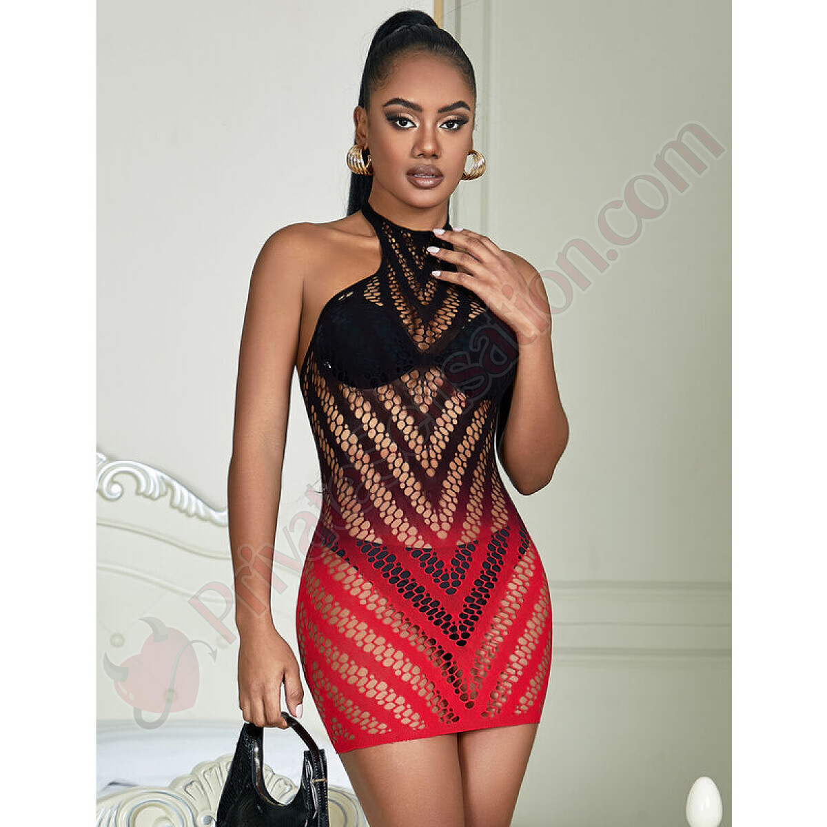 Questo body è più di un semplice capo di lingerie: è un'affermazione di stile e sicurezza. La combinazione di nero e rosso simboleggia passione ed eleganza, mentre il design senza maniche offre versatilità per essere abbinato a qualsiasi occasione. La griglia elastica non solo dona un effetto modellante, ma assicura anche un comfort prolungato, permettendoti di sentirti a tuo agio dalla sera alla notte.