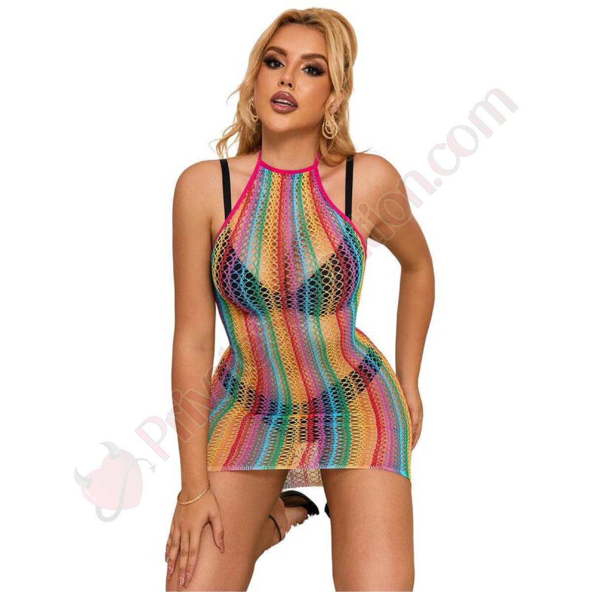 Questo vestito di lingerie è un capolavoro di design audace e raffinato. Con il suo motivo arcobaleno, cattura l'attenzione e aggiunge un tocco di colore e vivacità al tuo guardaroba intimo. Realizzato con materiali di alta qualità, offre un'esperienza di indossabilità senza pari.