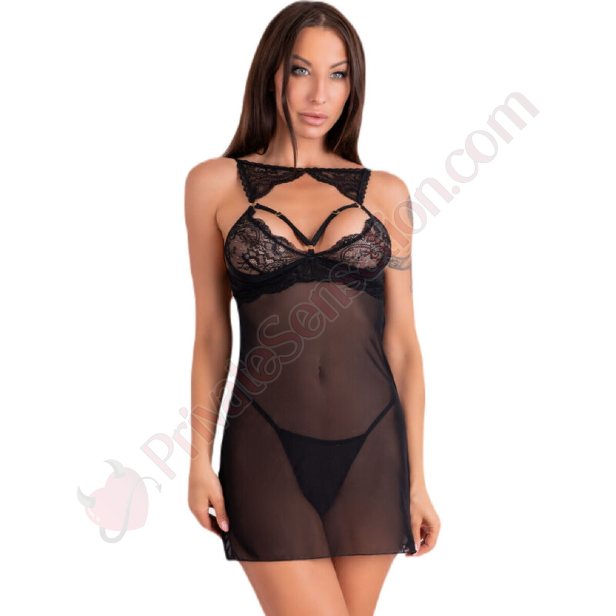 Immagina di indossare qualcosa che non solo valorizza le tue forme, ma le celebra con un tocco di mistero e seduzione. Il camison Krolina è proprio questo: un capo di lingerie spettacolare, progettato per esaltare la silhouette femminile in modo impeccabile. Questo set esclusivo, composto da una sottoveste e una tanga coordinata, è realizzato in maglia trasparente che avvolge il corpo come un secondo strato di pelle, mentre il pizzo ricamato lungo il busto aggiunge un dettaglio di lusso e raffinatezza.