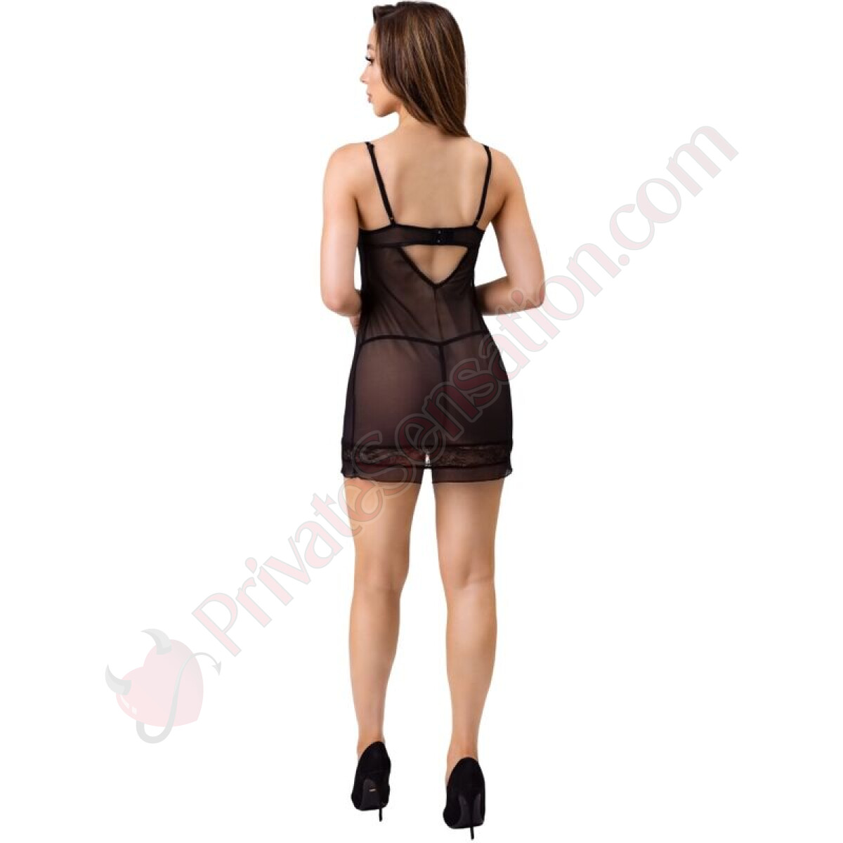 La camisetta, con il suo scollo insinuante e la delicata trasparenza, gioca con le luci e le ombre, mettendo in risalto la tua silhouette senza rivelare troppo. È l'arte della seduzione raffinata, che lascia spazio alla fantasia e al desiderio. Il tanga, dal design essenziale, si adatta come una seconda pelle, accentuando i fianchi e completando il look con un tocco di audacia.