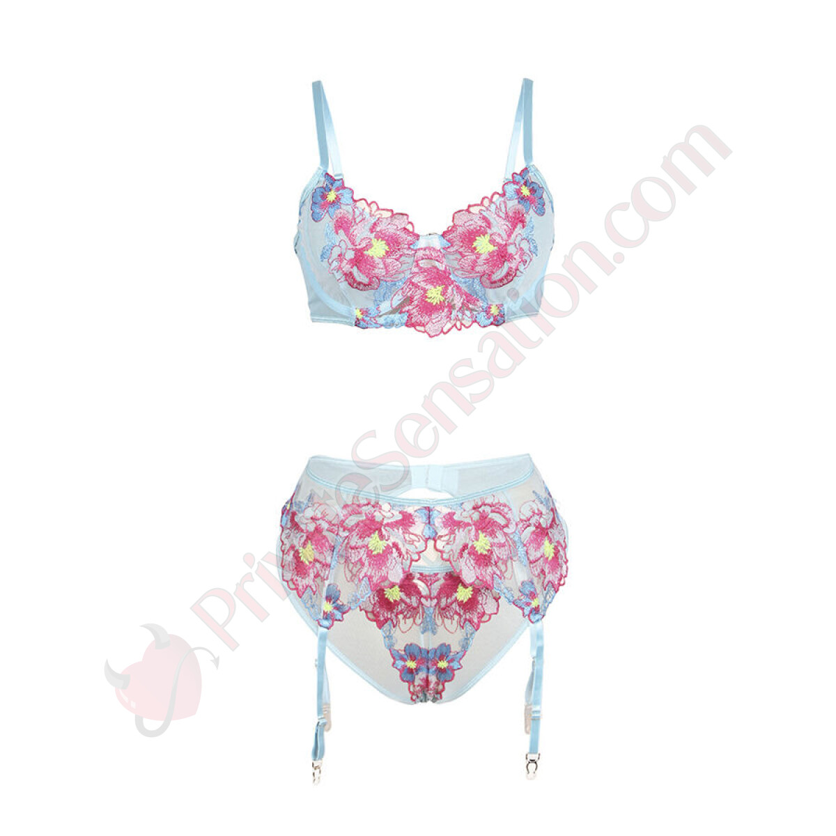 Ideale per serate speciali, momenti intimi o semplicemente per sentirsi incredibili in qualsiasi occasione, il Blue Sexy Mesh Embossed Floral Bra Set con Reggicalze è la scelta perfetta per chi cerca lingerie femminile, elegante e seducente. Lasciati avvolgere dal suo fascino e stupisci con la sofisticatezza di questo impressionante set blu!