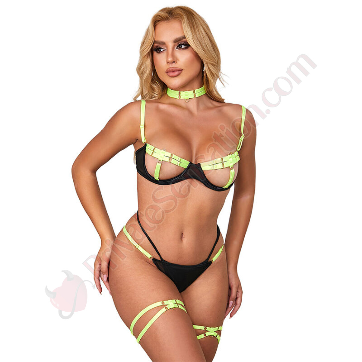 Che sia per una serata speciale, una sessione fotografica o semplicemente per sentirsi sicure e potenti, questo set di lingerie è la scelta ideale. La sua versatilità lo rende un must-have per chi vuole arricchire la propria collezione con un capo audace e raffinato.