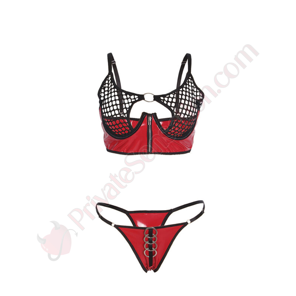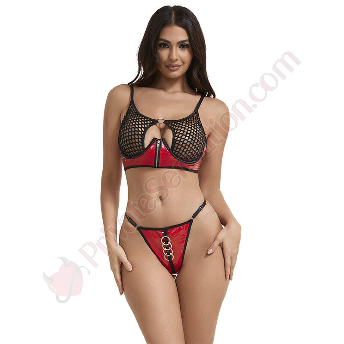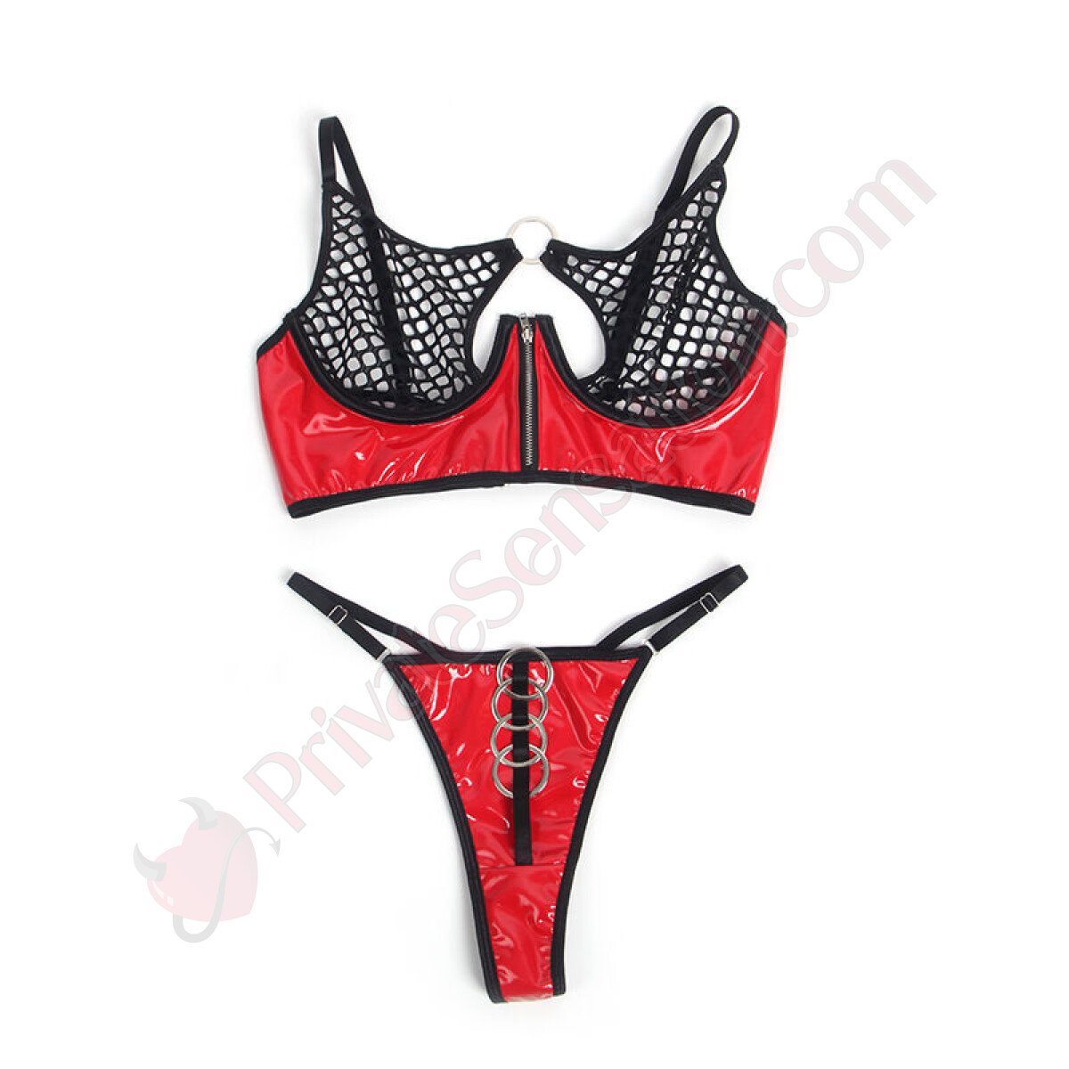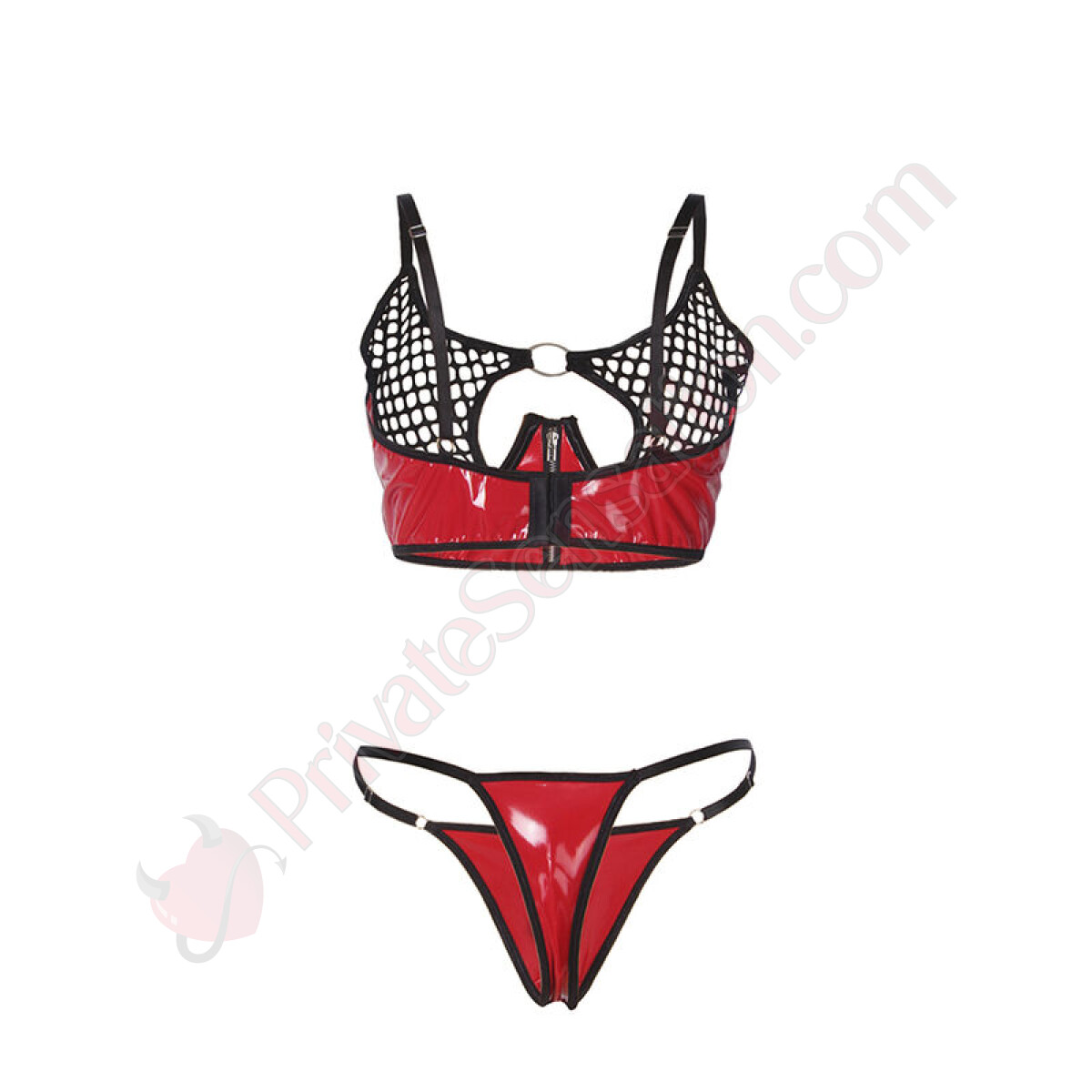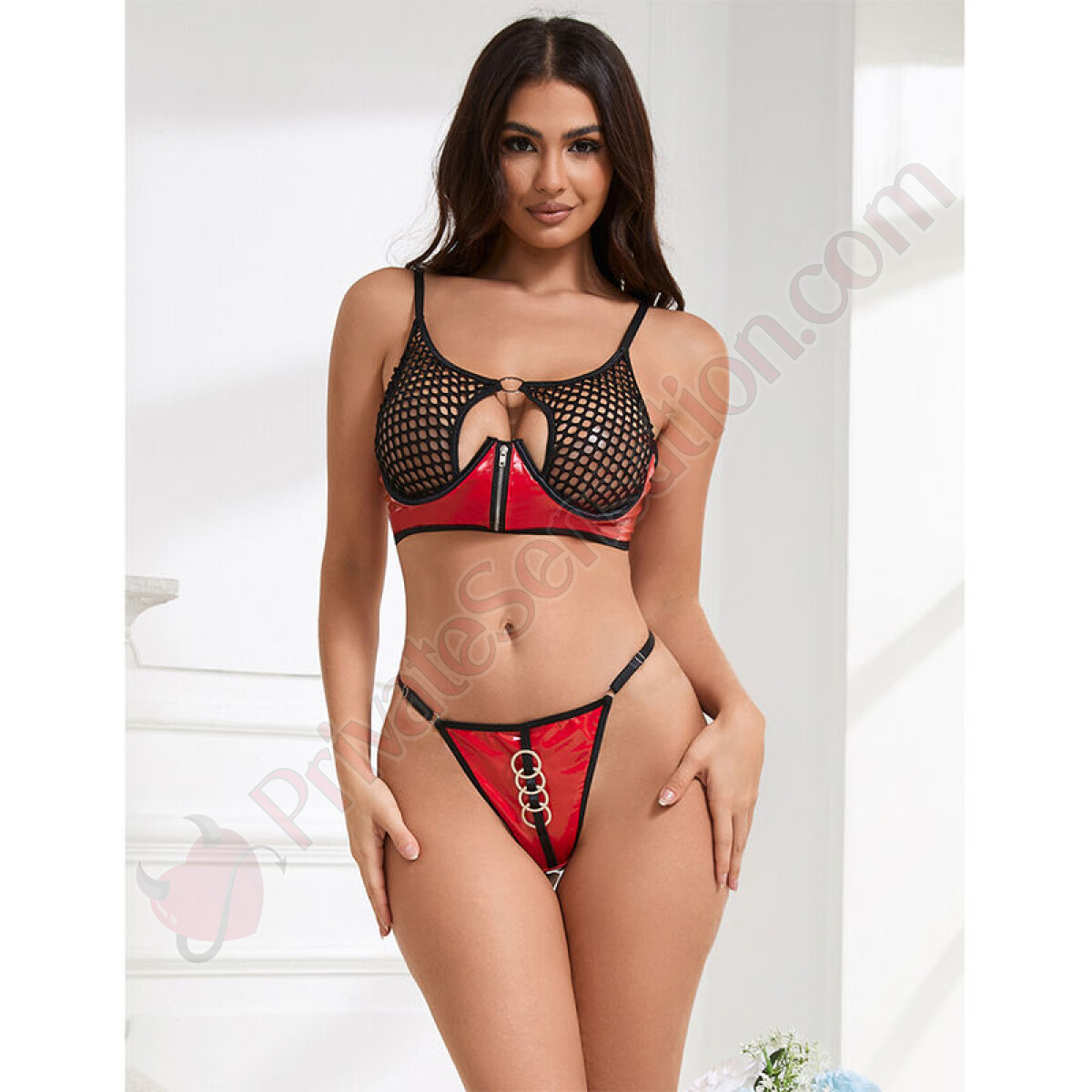 Desideri un capo che esprima la tua sensualità più audace e ti faccia sentire irresistibilmente sicura? Il Set Lingerie Rosso con Pelle Sintetica Lucida, Maglia e Cerniera Frontale è stato creato per te. Questo ensemble non è semplice lingerie: è una dichiarazione di stile, un'armatura di seduzione progettata per la donna che non ha paura di brillare e di lasciare un segno indelebile. Combina l'impatto provocatorio della pelle sintetica patentata con la leggerezza e le trasparenze seducenti della maglia, creando un contrasto visivo che cattura lo sguardo e accende la fantasia.