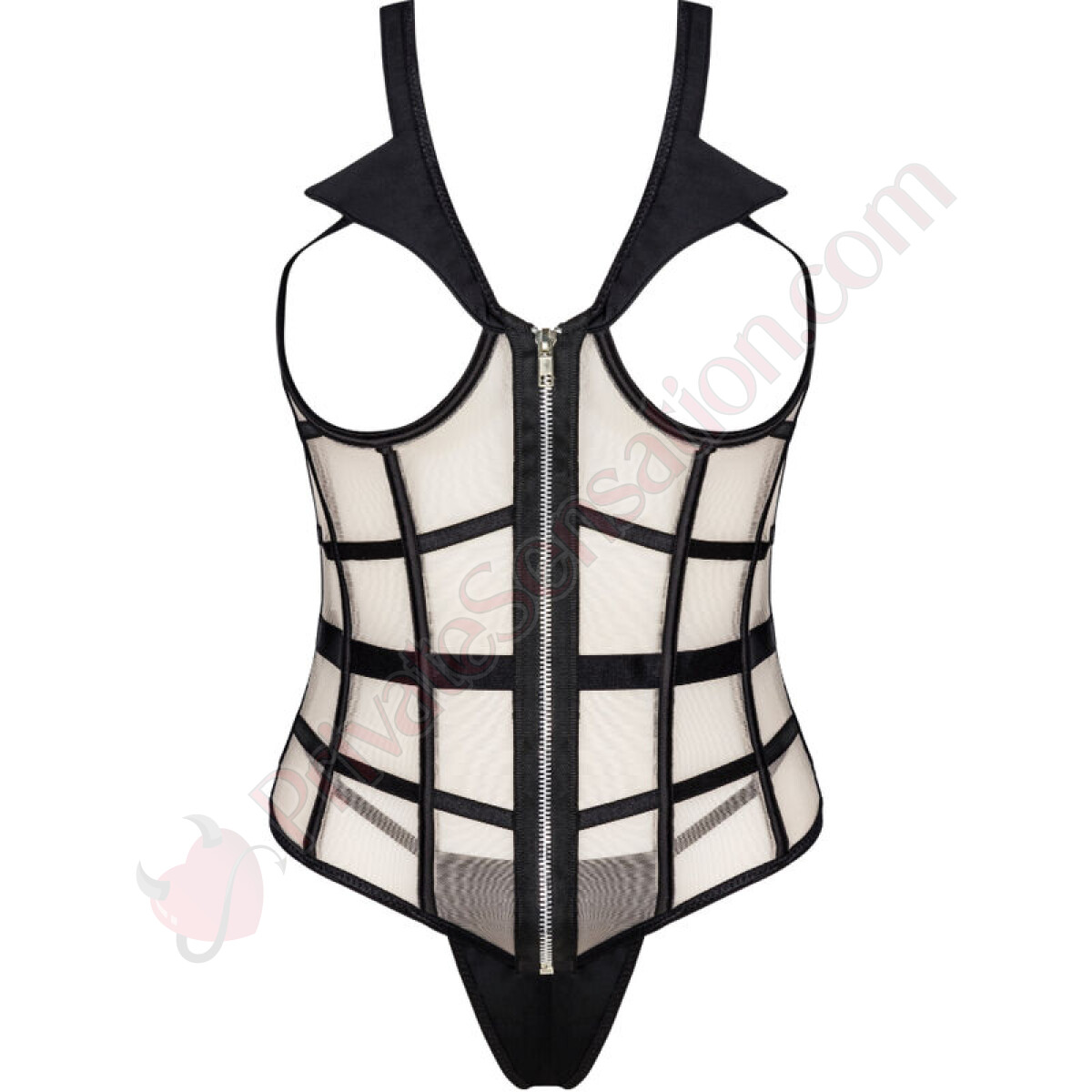 Il punto forte di questo corsetto sono i tagli che scoprono il seno, rendendo l'intero set estremamente audace e provocante. Non lascia nulla all'immaginazione, regalando un look che osa e seduce. Completa l'outfit con le stickers per i capezzoli per aggiungere un tocco di piccante in più.