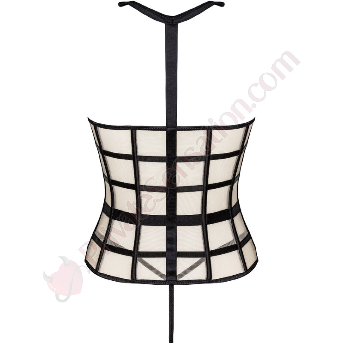 Benvenuta nel mondo dell'eleganza audace e della seduzione raffinata. Questo set di due pezzi, composto da un corsetto sensuale con scollatura frontale e un tanga nero, è progettato per esaltare ogni curva del tuo corpo e accendere la passione. I colori nero e beige si fondono in un'armonia irresistibile, mentre i dettagli come il colletto nero e le cinture strategiche modellano la vita creando una silhouette da sogno.