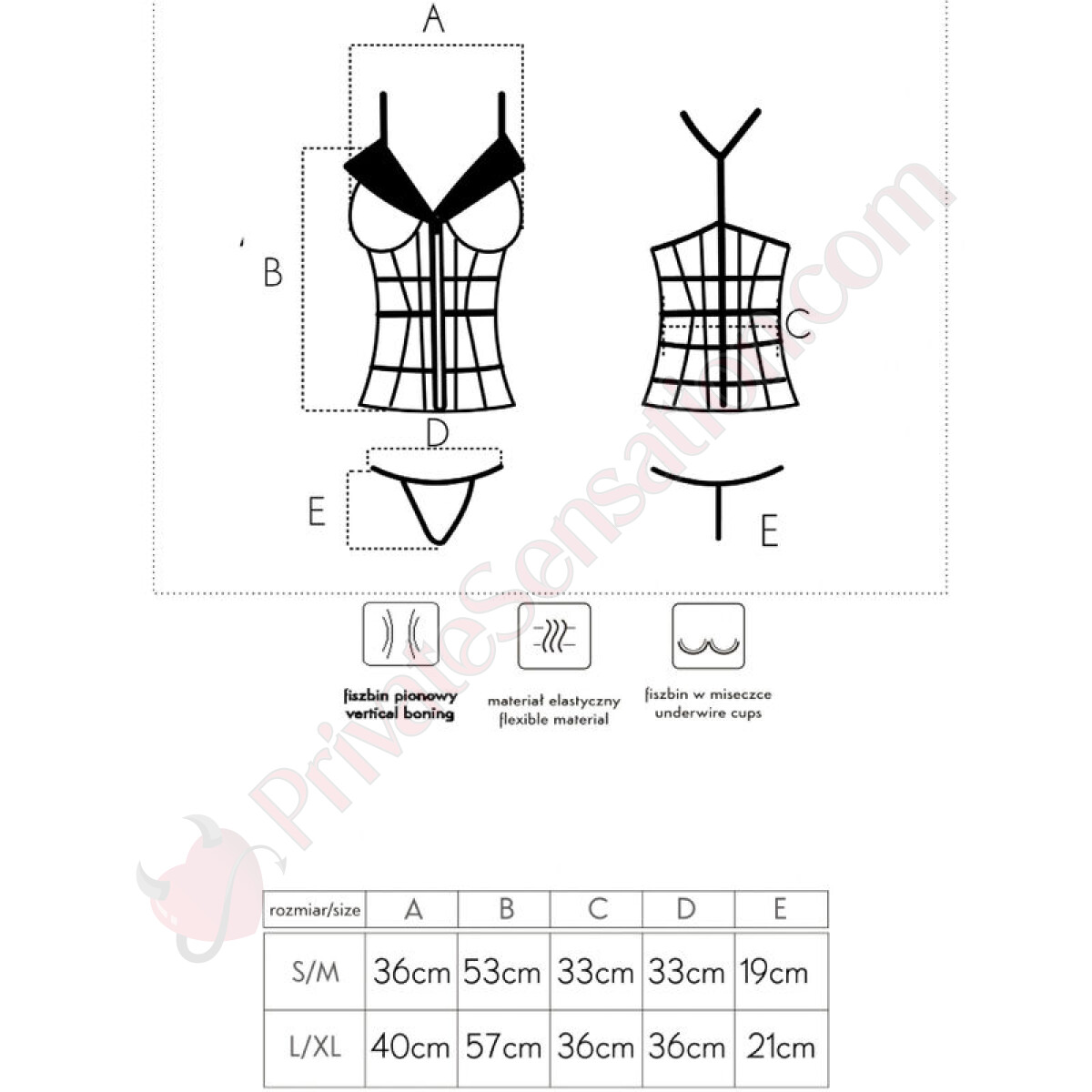 Realizzato con materiali delicati e flessibili, composti da 90% poliammide e 10% elastan, questo set si adatta perfettamente al tuo corpo senza sacrificare il comfort. Grazie alla cerniera frontale, indossarlo è semplice e veloce. Disponibile in due taglie universali S/M e L/XL, si adatta a diverse misure senza problemi di vestibilità.