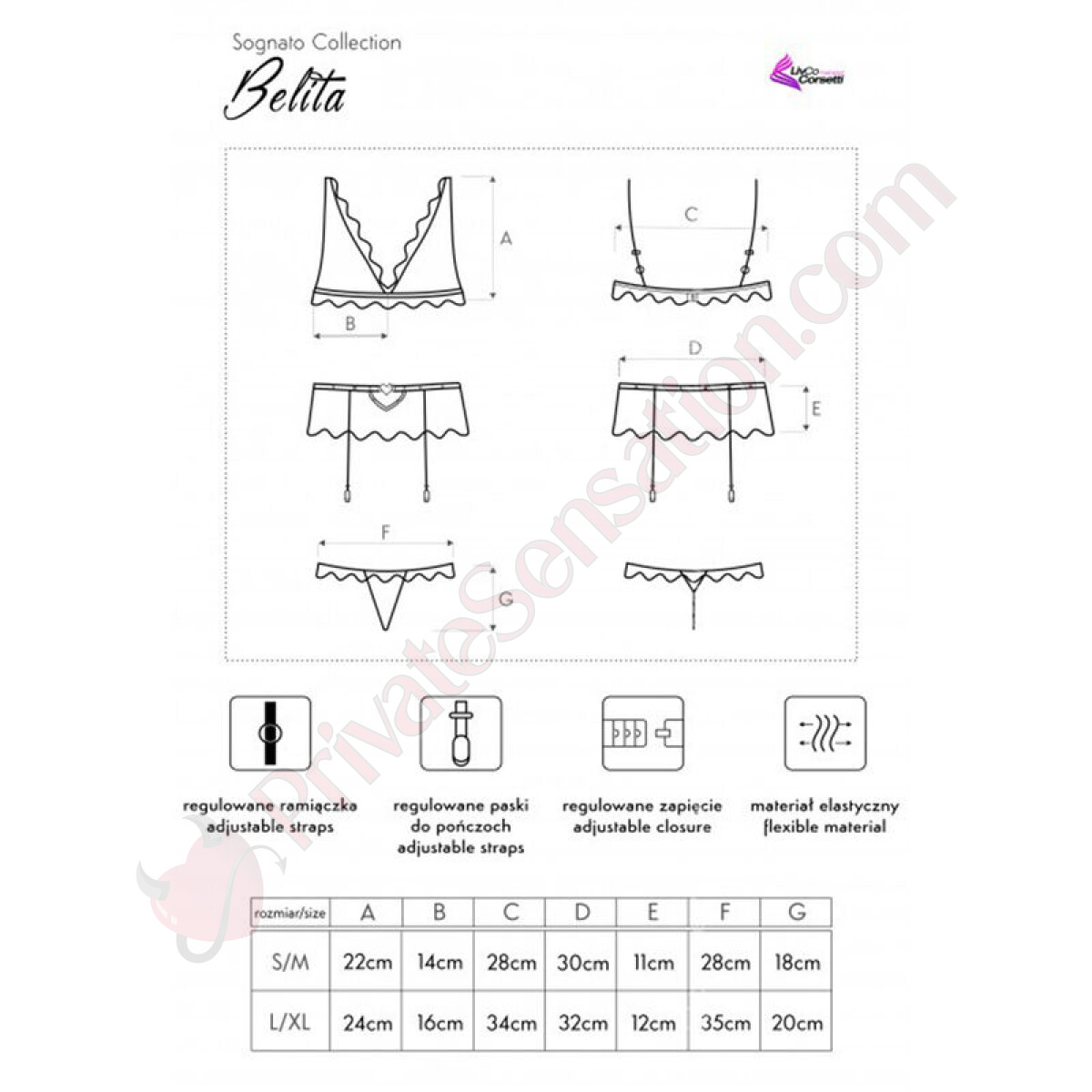 Realizzato in pizzo elastico e morbido, questo set offre una sensazione di lusso a contatto con la pelle: