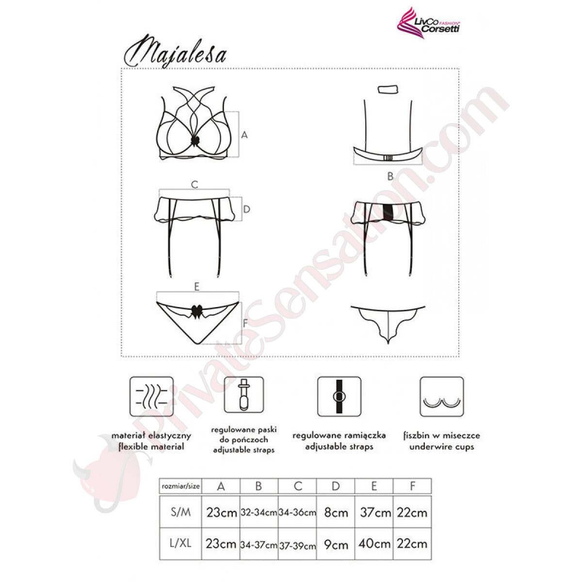 Il set, composto da reggiseno, slip e reggicalze, è studiato per adattarsi magnificamente sia a figure snelle che leggermente più curvilinee. Il taglio intelligente maschera con maestria le piccole imperfezioni intorno ai fianchi e alla pancia, donando una silhouette armoniosa e levigata. Non importa la tua forma: questo set è pensato per valorizzarti al massimo, regalandoti sicurezza e fascino in ogni occasione.