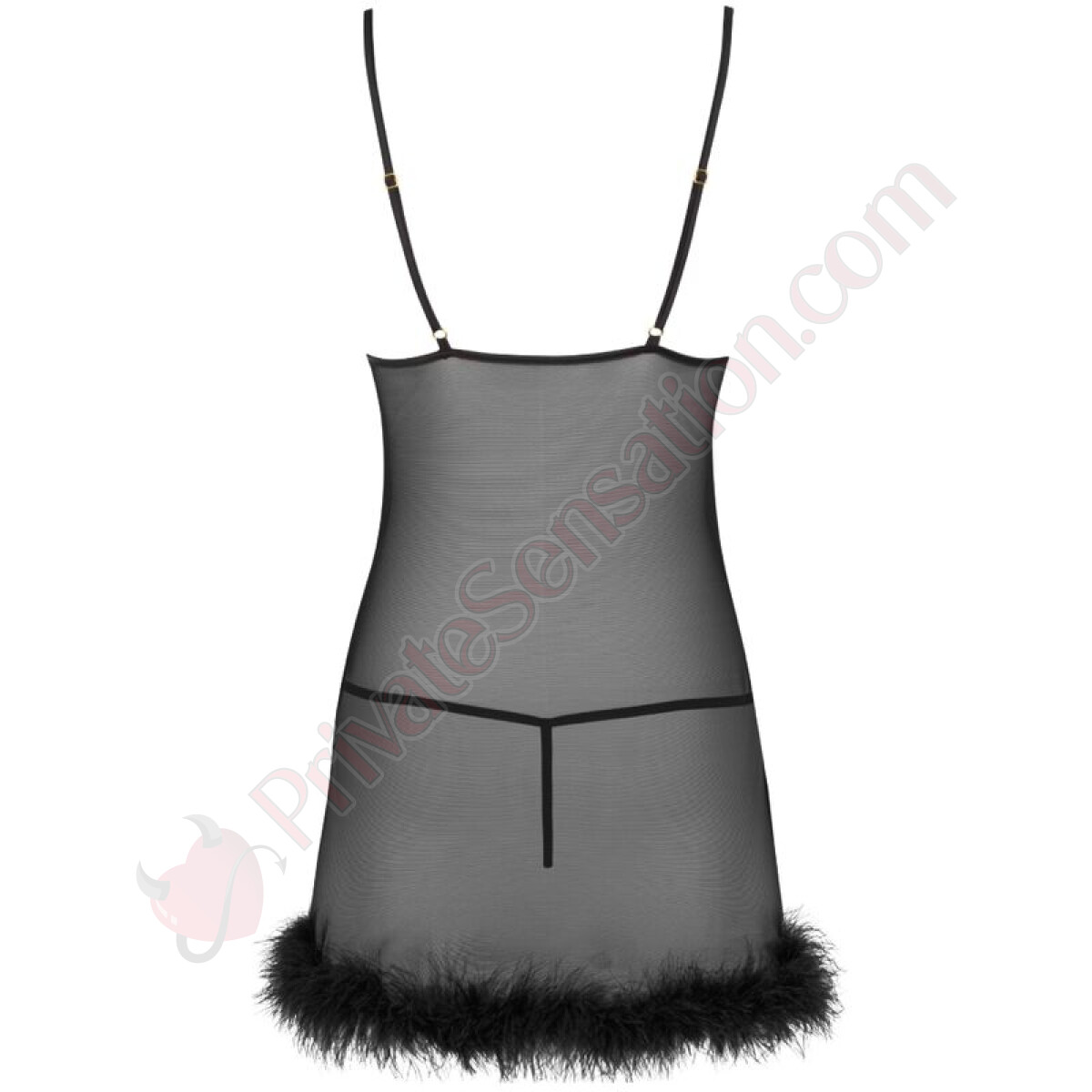 Benvenuta nel mondo della lingerie di lusso, dove ogni dettaglio è progettato per esaltare la tua bellezza e farti sentire unica. Il set Zerunam, composto da un tanga e una camicetta con spalline sottili, incarna l'essenza della sensualità raffinata. Realizzato in una maglia semitrasparente di colore nero atemporale, questo set è adatto a ogni occasione, dalla serata romantica al momento speciale in cui desideri sentirti irresistibile.