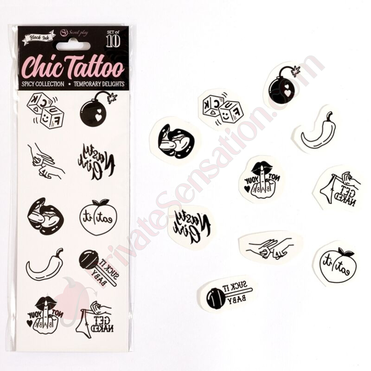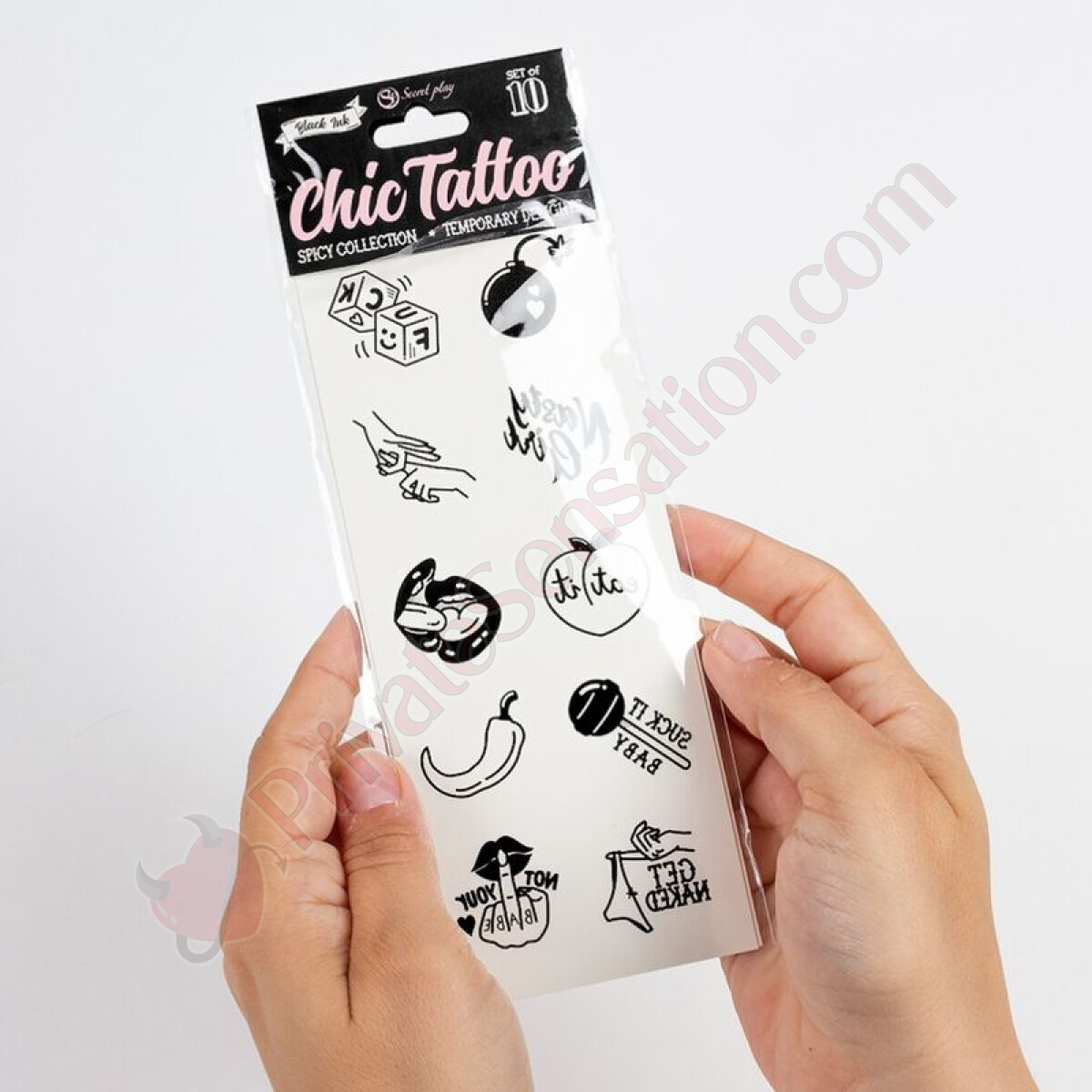 La confezione contiene 10 tatuaggi temporanei della nostra esclusiva Collezione Spicy, con design audaci, sensuali e ricchi di personalità. Ogni tatuaggio è realizzato con inchiostri di alta qualità, sicuri per la pelle e facili da gestire.