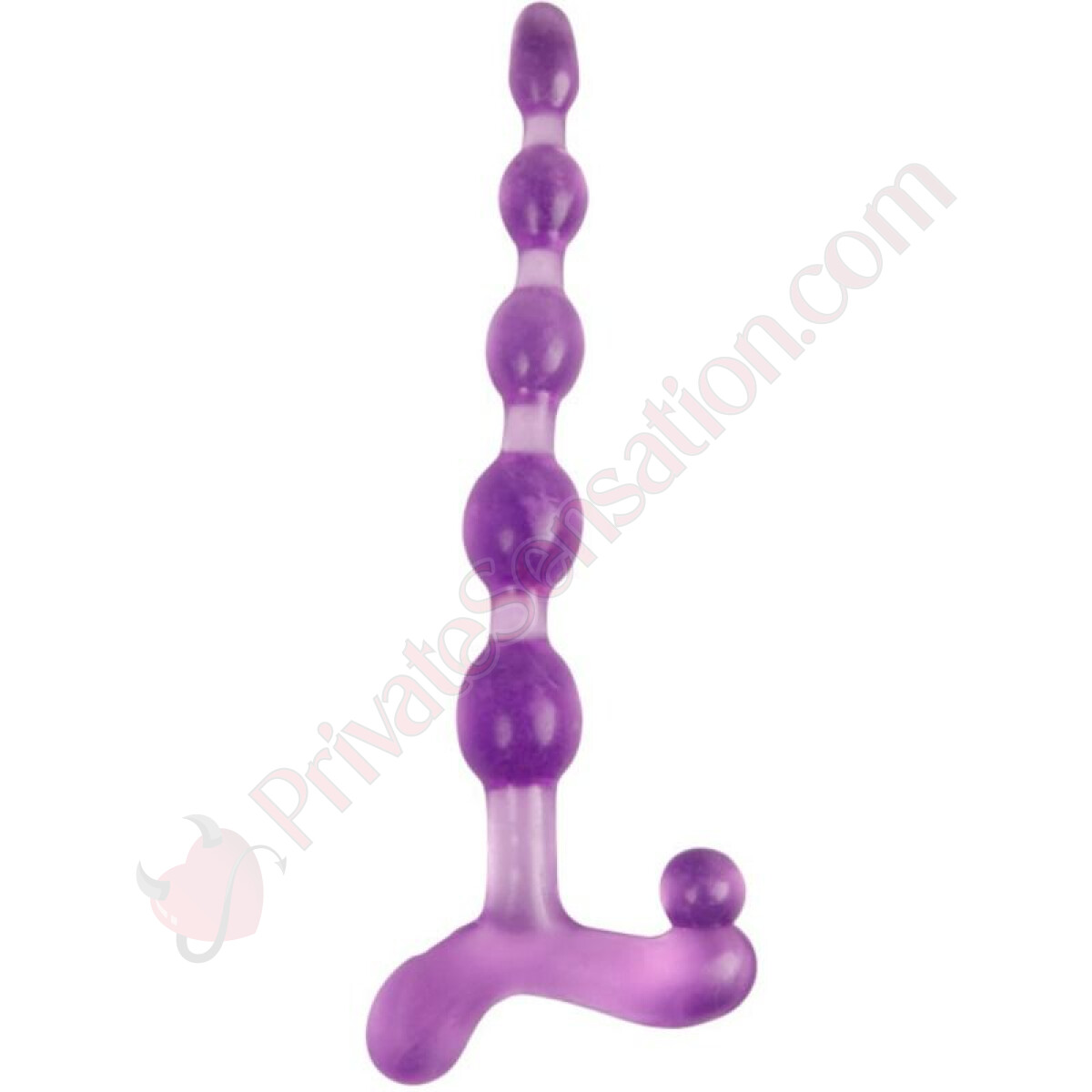 Il set è composto da un vibratore color argento con guaine intercambiabili e un dildo traslucido. È presente anche un anello per il pene con texture in rilievo e funzione vibrante, pensato per stimolare entrambi i partner. Completa il kit una catena anale graduata, utilizzabile sia per via anale che vaginale.