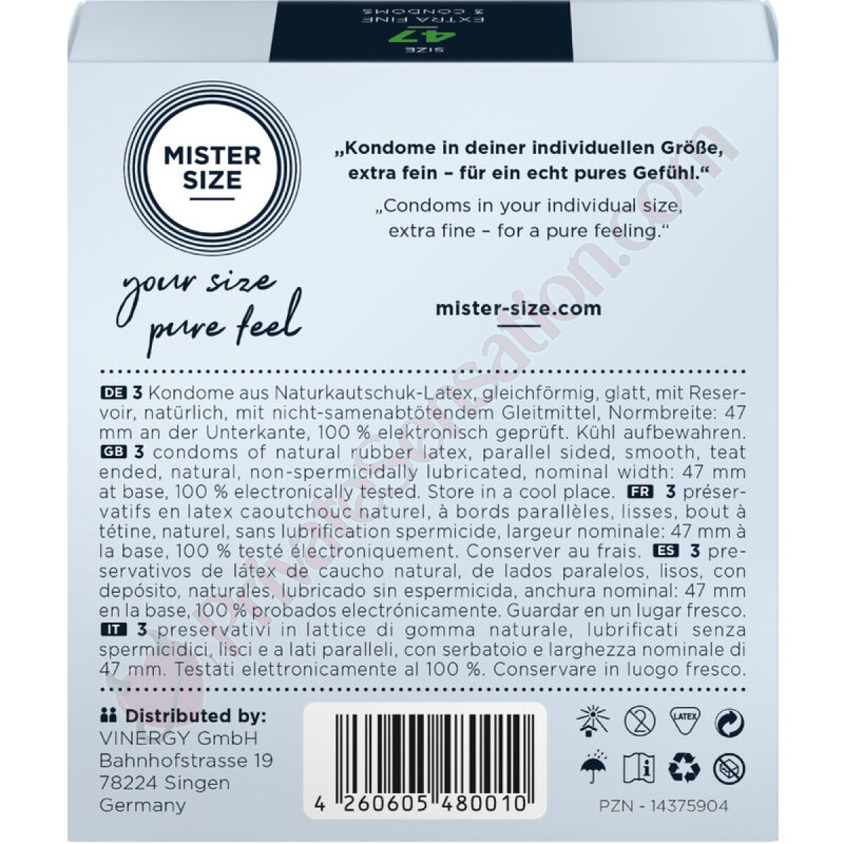 Il MISTER SIZE 47 è il più piccolo dei nostri sette formati, ma non lasciarti ingannare dalle dimensioni: questo preservativo rappresenta la soluzione definitiva per chi cerca comfort, sicurezza e sensazioni intense. Se hai un pene più sottile, finalmente hai trovato il tuo alleato perfetto per esperienze sessuali indimenticabili.