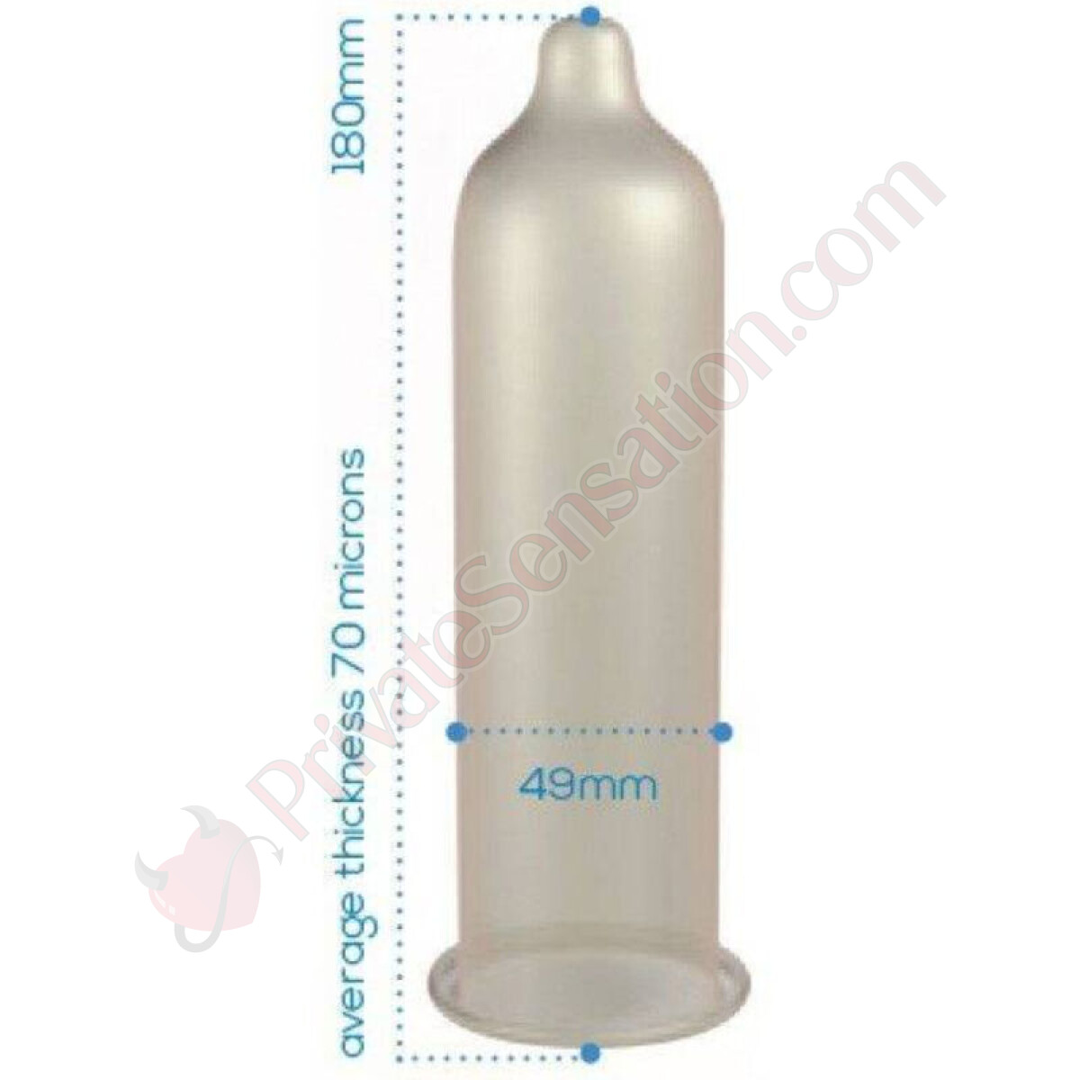 I preservativi standard, con una larghezza nominale che varia tra i 52 e i 56 mm, possono risultare eccessivamente ampi per alcuni, causando disagio, rischio di scivolamento e una sensazione di distacco. I Pasante Trim, con una larghezza nominale di soli 49 mm, sono leggermente più stretti, garantendo un adattamento ottimale per una circonferenza del pene eretto compresa tra i 10 e gli 11 cm. Questo design mirato non solo migliora la sicurezza, riducendo le possibilità di rottura o scivolamento, ma esalta anche la sensibilità, permettendoti di vivere ogni momento con intensità e naturalezza.