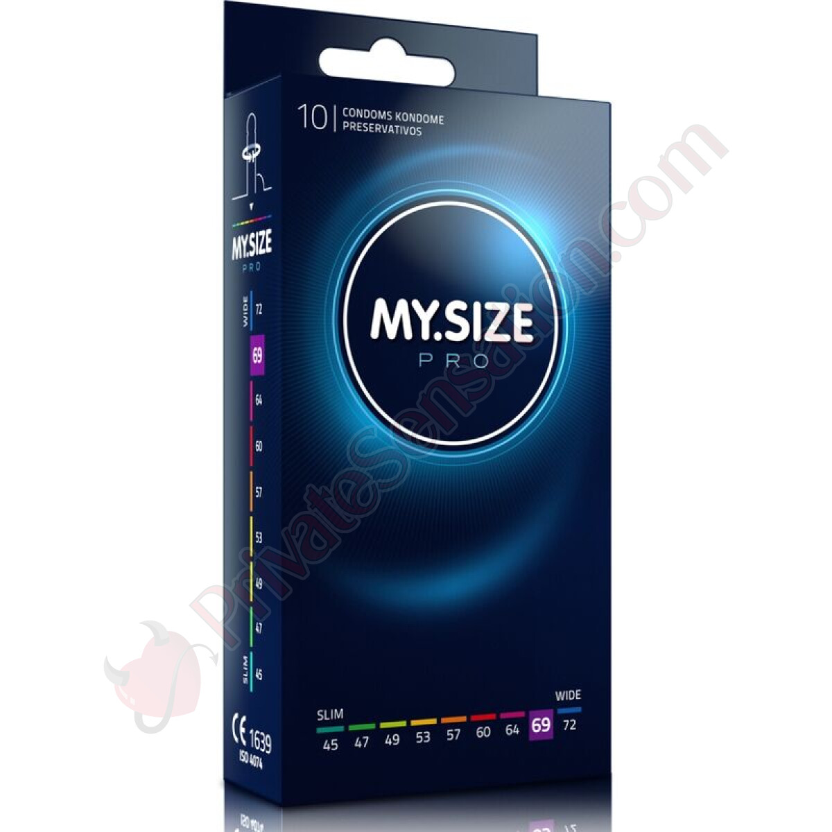 MY.SIZE si adatta a tutte le esigenze con MY.SIZE PRO. Unità: 10 unità. Diametro: 69 mm (UNICO). MY.SIZE PRO è l'unica marca al mondo che offre un'ampia gamma di larghezze per i suoi utenti: 45 – 47 - 49 - 53 - 57 - 60 - 64 - 69 - 72 mm.